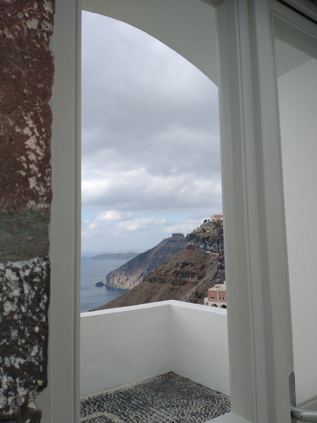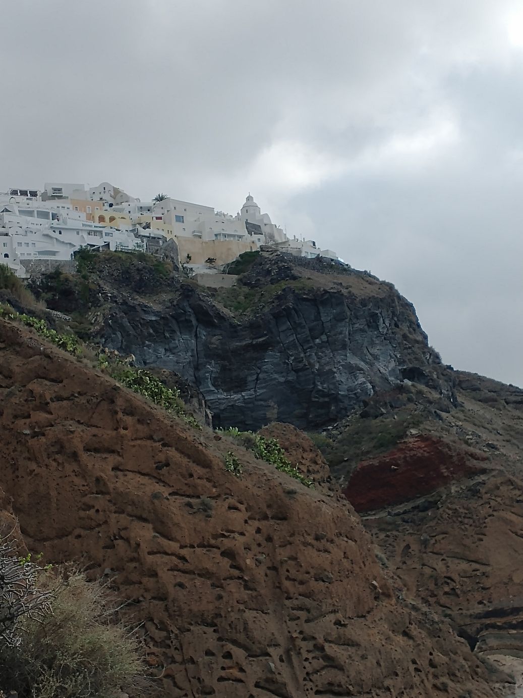 Done with prehistoric Thera, we go out into modern day Thera, dodging ship people and enjoying the cold bracing air and looking at all the pretty white washed buildings, churches and clock towers around. Plus the awesome bar-terraces that line the main old city walk. Now those would be fun at night – not for us, of course – at least not today, because never say never!