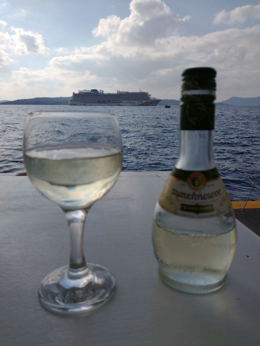 Successfully navigating the stairs makes us thirsty – did you expect anything different? – and we stop at the harbor for refreshments, watching the line at the tenders until it is small enough for us to go and get aboard without too much waiting…or crowding.