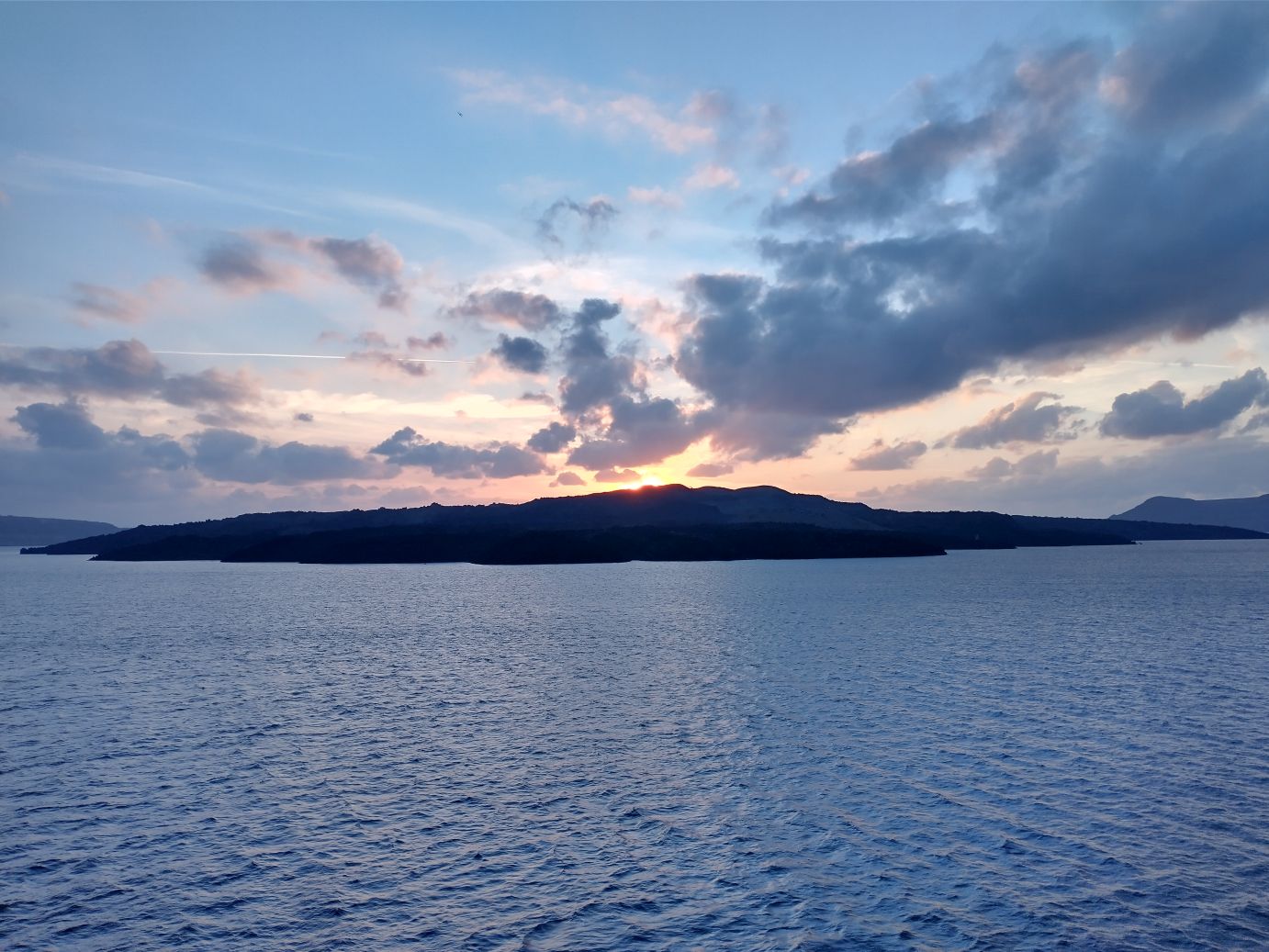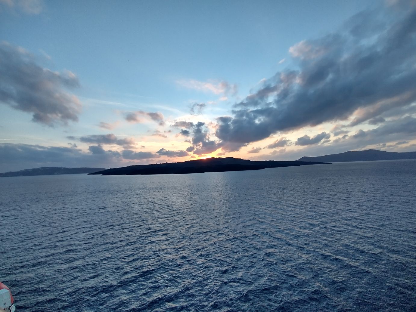 We are back aboard in no time, and able to take some great long shots of Thera as well as watch a lovely sunset.