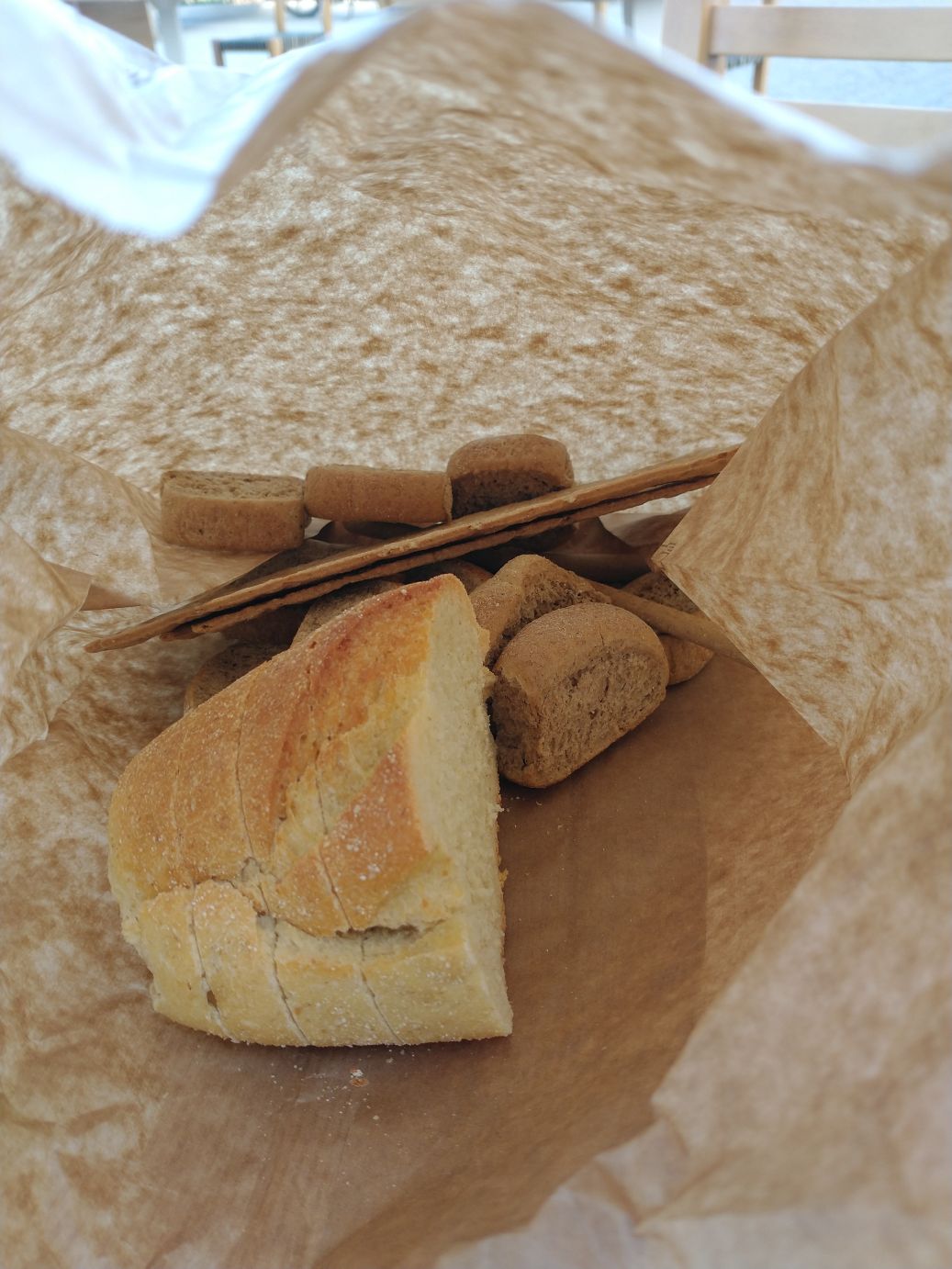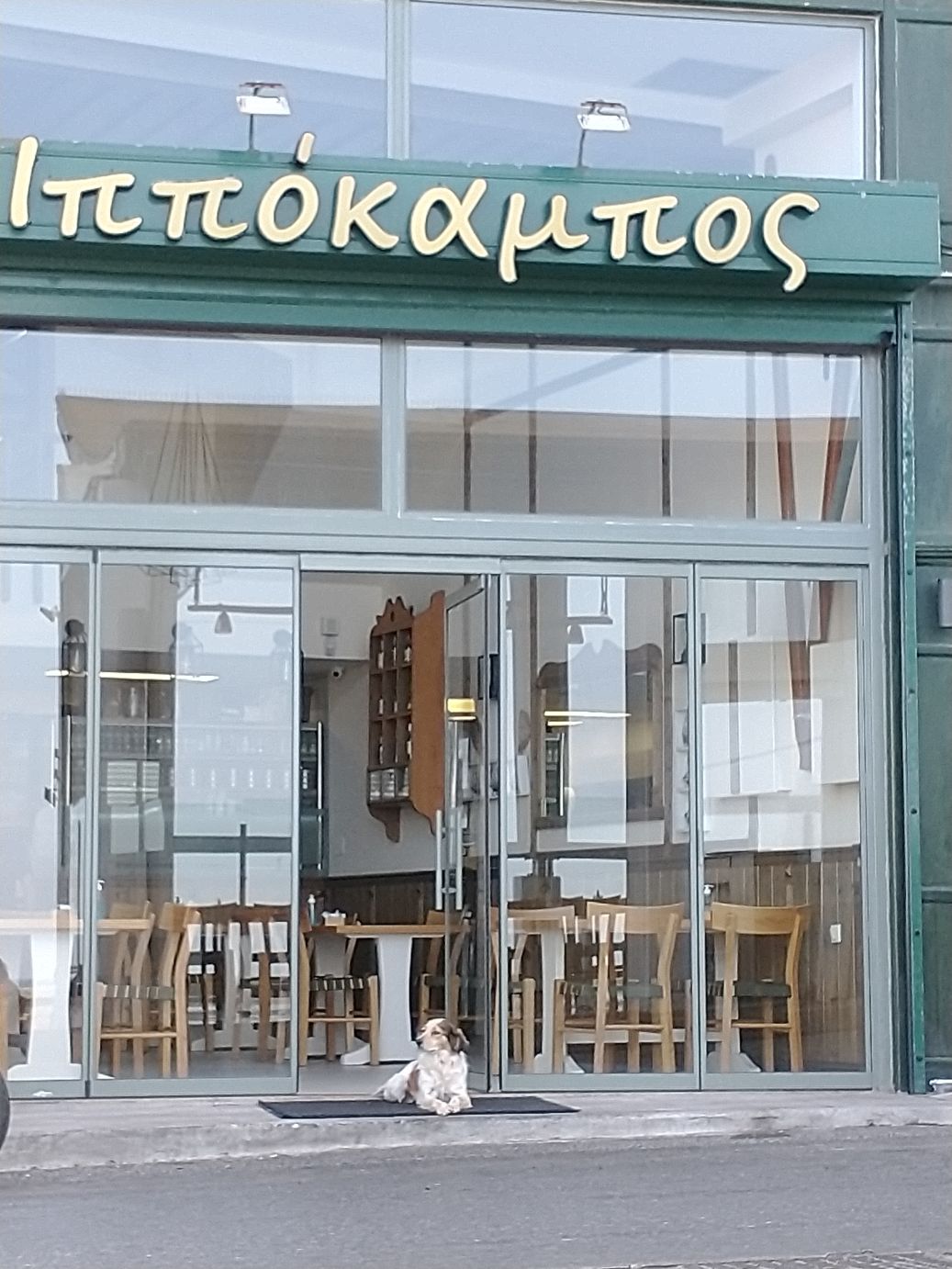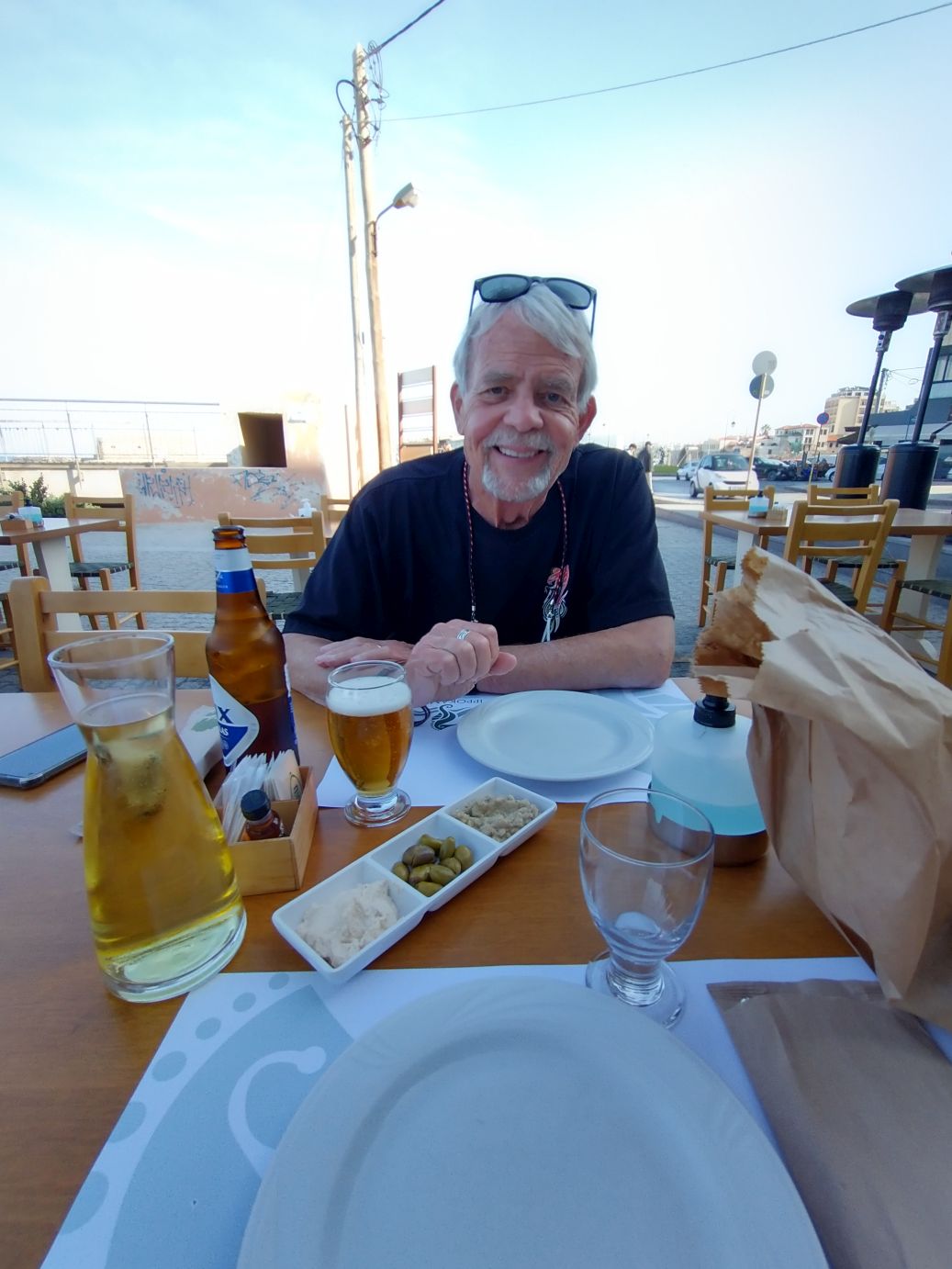 It is around noon time anyway, so we head off to the waterfront in search of the restaurant Ed had found, Ippokampos. We find the stretch of restaurants along the waterfront promenade easily enough, but all the enclosed eating areas on the promenade across from each restaurant look closed. And we don’t see one for Ippokampos. Hmmm….circling around the block, and then walking down the street side of the restaurants, we eventually find the right place, where it appears they are just getting ready to open. We grab a table outside on the promenade, and basically have the place all to ourselves, in the sun (it is cold, and a little windy, but in the sun it is ok). Let the feast begin!
