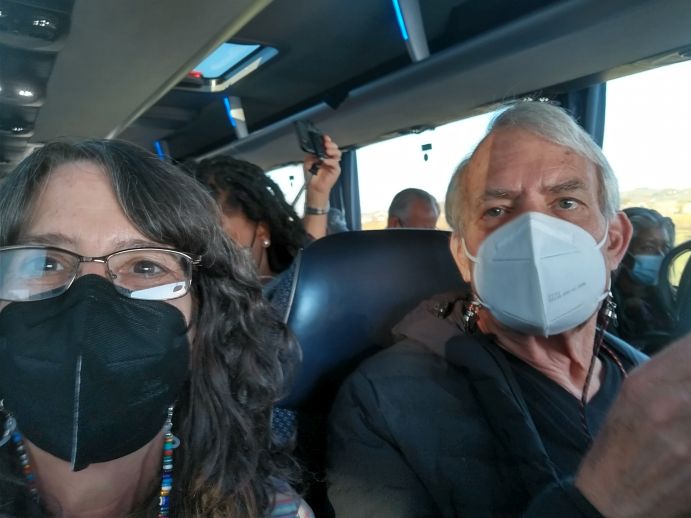 When the lady who was occupying that row of seats gets on the bus, she looks perplexed and asks why they are sitting there. He explains they were in the back and wanted to be up front. So this works out well. She replies, for you it does! OMG. Fortunately the lady behind us is by herself as well and offers this lady a seat. We then get into a big discussion with them about seat “robbers” and how it is so impolite, and in the future always bring a water bottle or something that you can leave on your seat.
