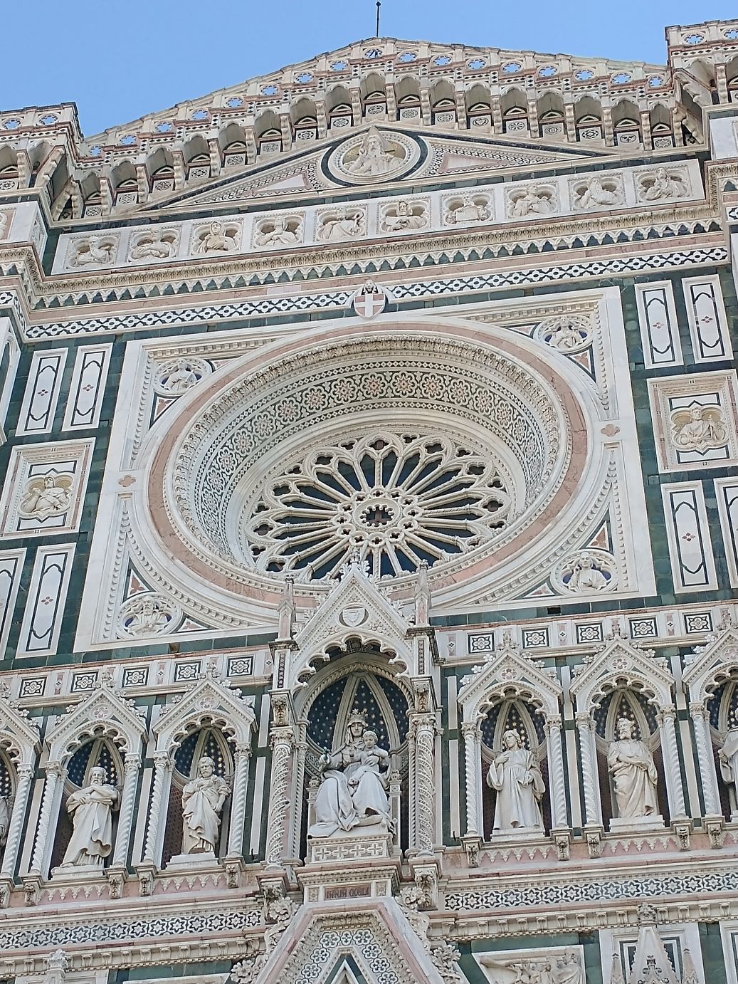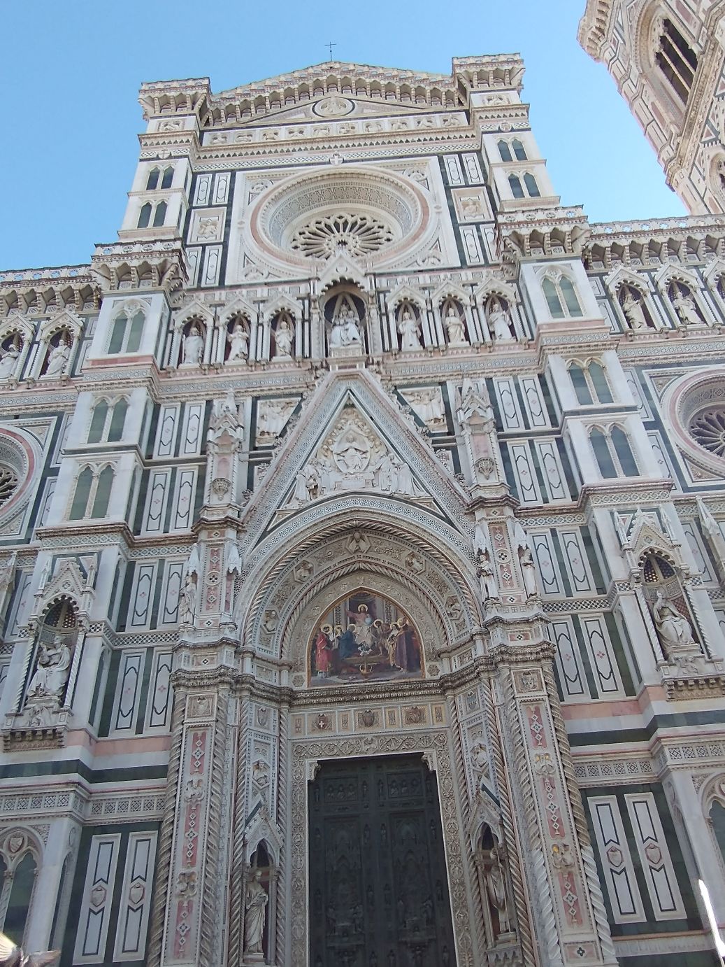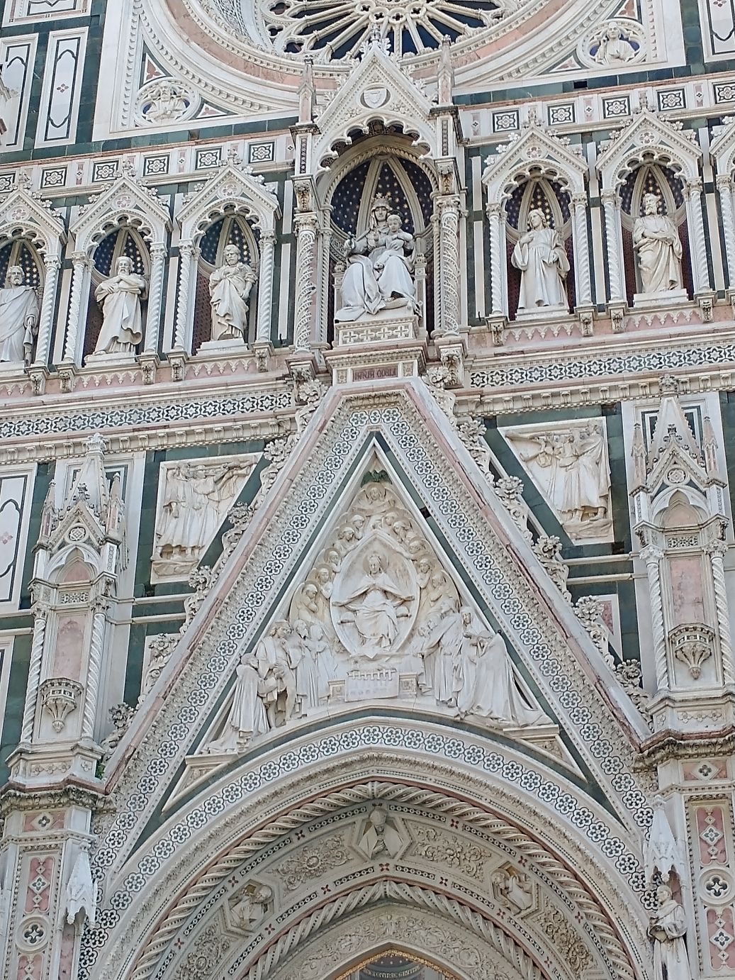 Crowds or not, this is still one of the most gorgeous buildings in the world. The marble, the art, the statuary, everything is exquisite. If it weren’t for a) the freezing wind and b) the people, we could stand here all day just gazing at the façade, finding different features and views to examine.