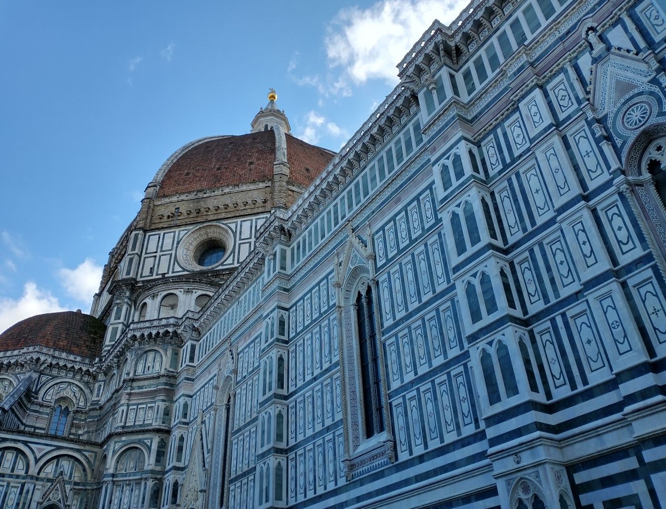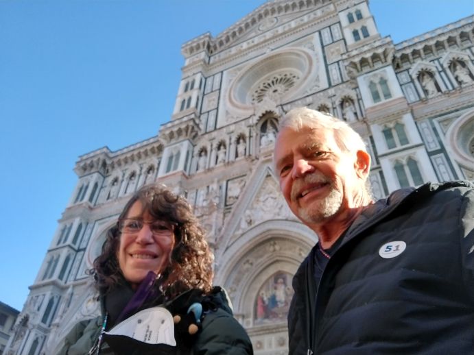 Once at the bus park (which I remember vividly from the first time we visited Florence as it is about ½ a mile from the city itself), we pile out of the bus and start our long slow trek toward the Duomo square. I’ve been telling Ed half these people will not make it into Florence from that parking lot, and I’m just about proven correct. I mean, we have a lot of mobility challenged people on this tour. I’m guessing they didn’t read the description or do any research as to how much walking this would be. And maybe I’m being a little harsh, because we do know the area and knew exactly what to expect form being here before. But still. Sadly, people wait way too long to travel – or just don’t really understand their limitations.