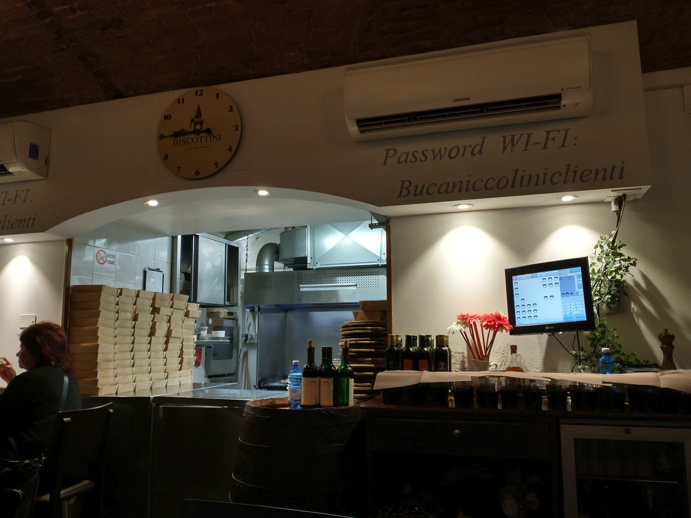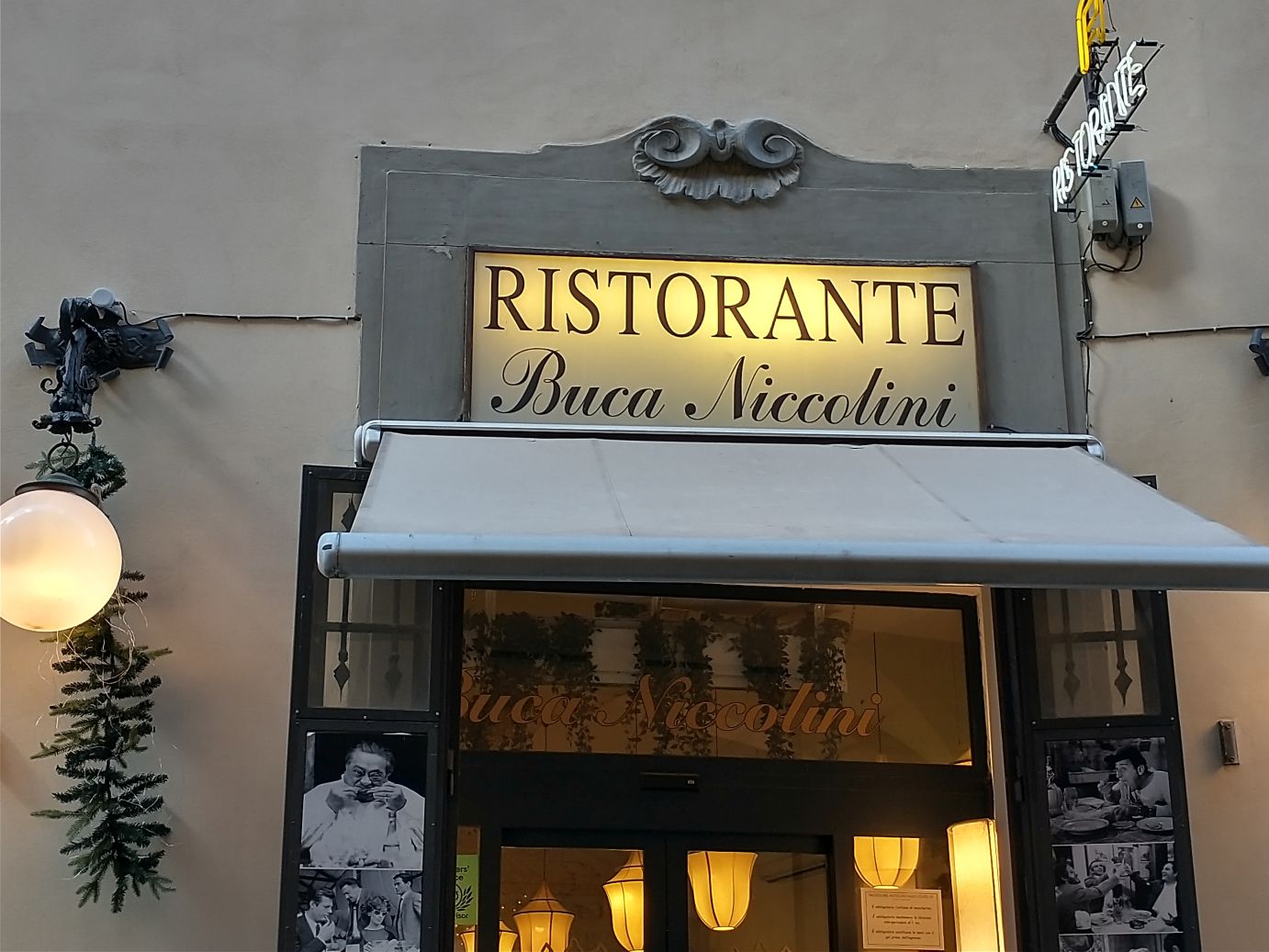 We’re back, standing in the sun, long before our 20 minutes are up, and ready to follow Sharif around the corner (the first tour bus guide left some of her mobility challenged passengers there already – that’s how I know where it is) to Buca Niccolini, a little restaurant near the Duomo.