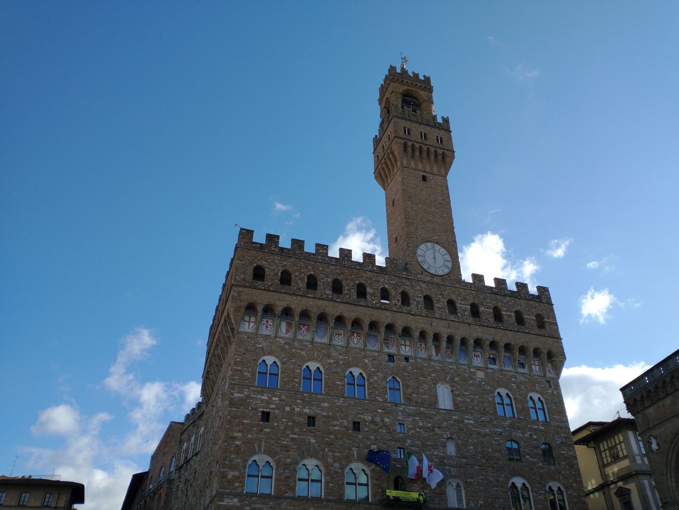 And finally, we are off on our hour and a half drive to Florence. The guide – Sharif (yes, named after Omar Sharif) is adorable. He gives us lots of interesting info as we make our way up the autostrada toward Florence. The photographer hands out the selfie sticks – yes, this tour is called let’s take a selfie in Florence and Pisa – and yes, we are totally embarrassed to be taking a “selfie” tour – and no we don’t plan to use the stick for much besides a weapon – but hey, it gets us off the ship to places we haven’t been for a while and it was one of the cheapest tours available. We pair up our remote shutter to the camera and are ready to go in a jiffy.
