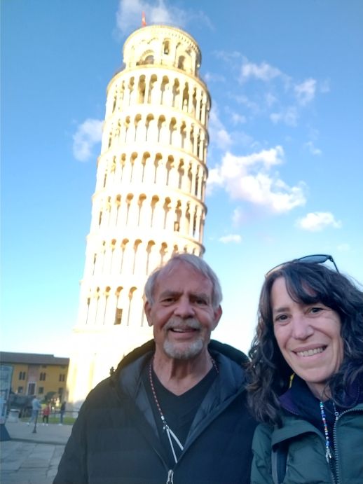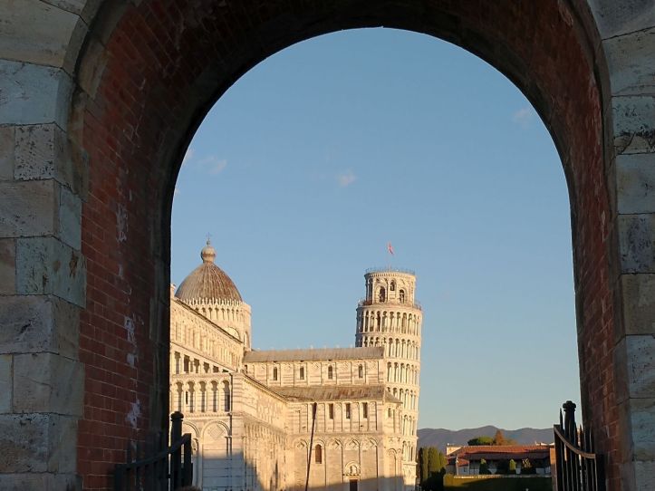 With that we head for our last stop in Florence, up the hill to the viewpoint where we can see all the city stretched out below us. 20 minutes here and we are back on the bus, heading toward Pisa. And apparently our little chit chat with the ladies about people “stealing” seats on tour buses has made an impact. The interlopers are back in the back, and our lady friend has her original seat back. Some things work out well!