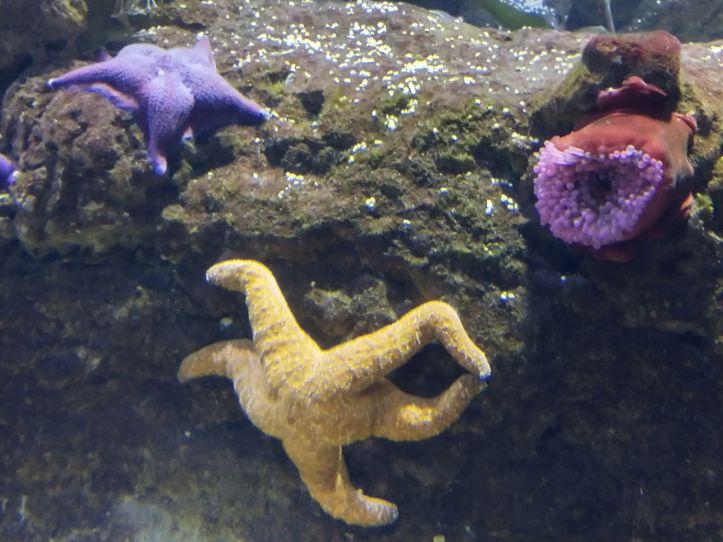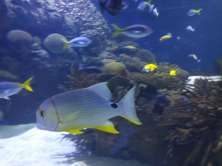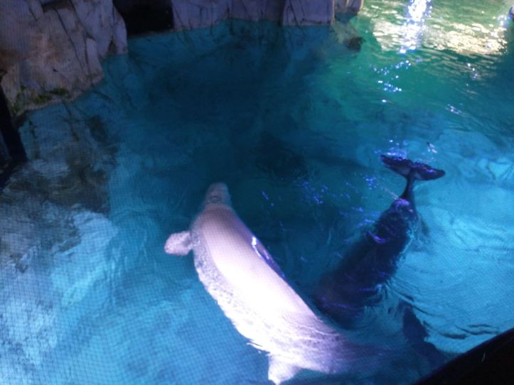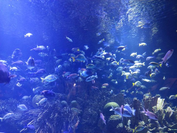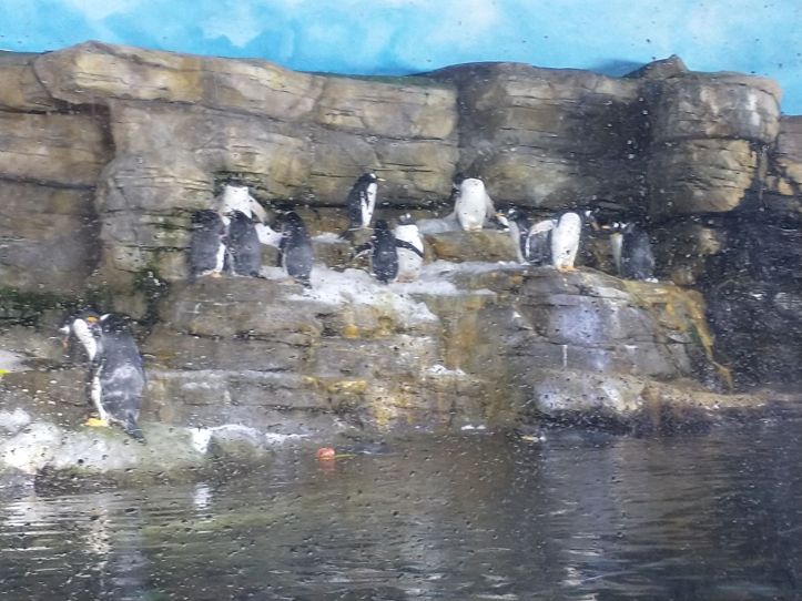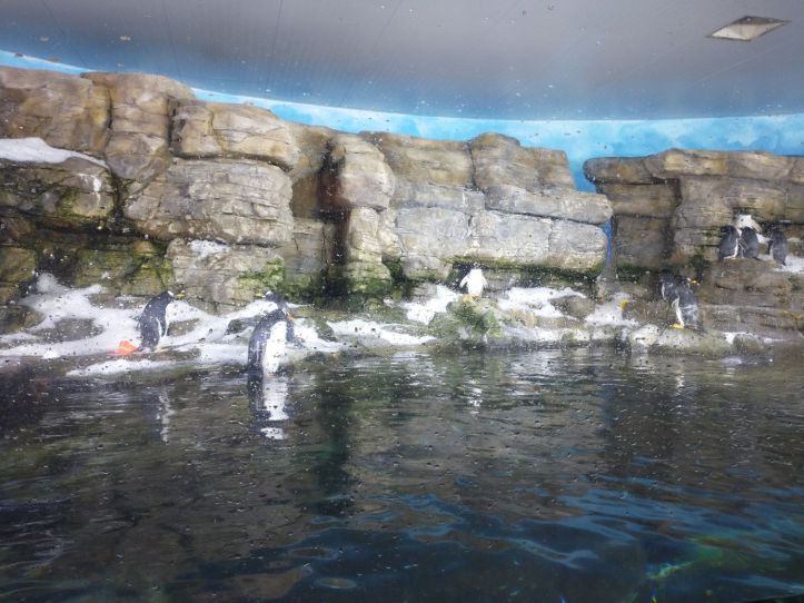 It is a huge facility and we obviously didn’t do enough research, because to get from one section to another is all outside, and it is cold, but we didn’t wear our heavy coats so we wouldn’t have to lug them around inside…..thankfully it is only 2 hours! But still, it is an amazing place with tons of different ecosystems to explore. The Mediterranean, Caribbean, Arctic (although the penguins are a little weak – but only because we’ve been spoiled by the Cape Town aquarium), shark tank (awesome, they followed us through the tunnel under the aquarium, like we were walking them on a leash or something) and the outside dolphin show stadium. Oh, and the salt pond with the flamingos.