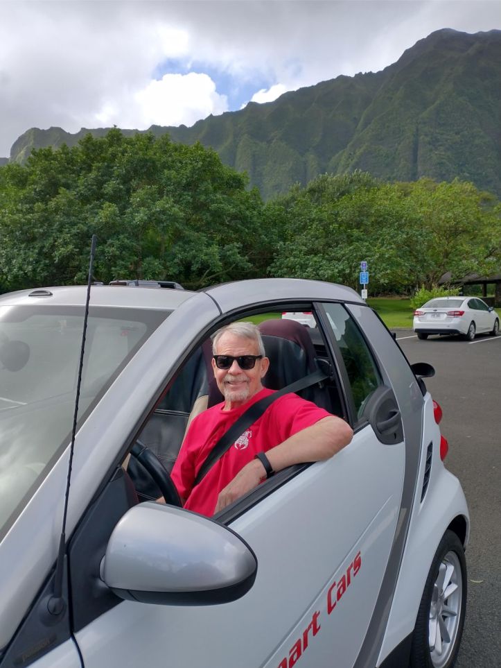 Because we are later than anticipated, the traffic is heavier than we had hoped (there is always traffic here, but getting to the H1 is just incredibly torturous. Once on the highway though, things are smooth. The little teeny car handles well, and as Ed said, he had concerns about driving something so small on the highway, but it really isn’t an issue. It feels far bigger than it actually is, and while the small wheel base makes for a bumpier ride, it is still pretty decent ride.
