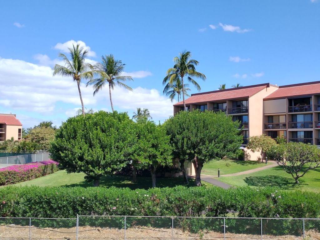 We walk south for our afternoon stroll, mostly because we want to see if there are more park paths that way (there are not), to scope out the restaurant parking lot situation for tonight’s take out dinner and to see what other food trucks are on the street a block away from our condo (Kinaole Grill, which we already knew, and Thai Fusion, which we didn’t but is redundant with tonight’s food selection). Ok. Scouting session done.