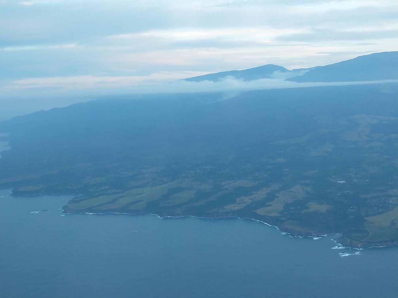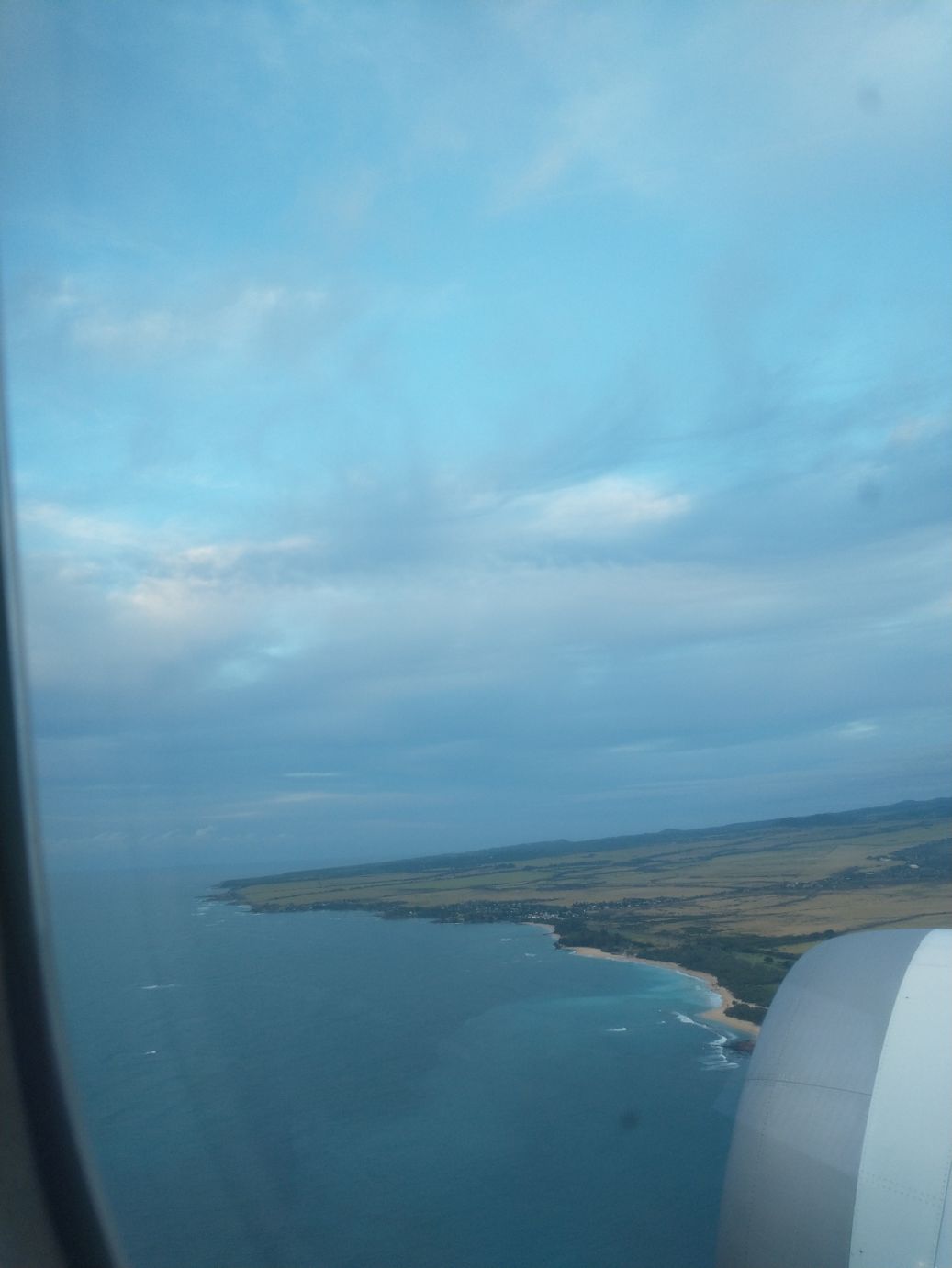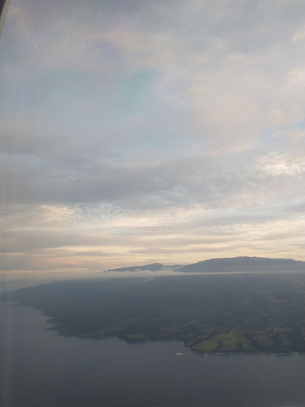 The flight is nowhere near as full as the one coming over – and we were lucky enough to rebook, (paying for our fare and using our $100 credit instead of points) and grab 2 Premium Plus bulkhead seats for the extra room – and hopefully to help us sleep the little we can on this quick but overnight flight. The seats are great – the service good (not as good as our sweet Jennifer on the way over though) – and the view on take off is spectacular. Bittersweet. But spectacular. I have to admit, though, I did have tears in my eyes watching the island slowly disappear into the clouds.