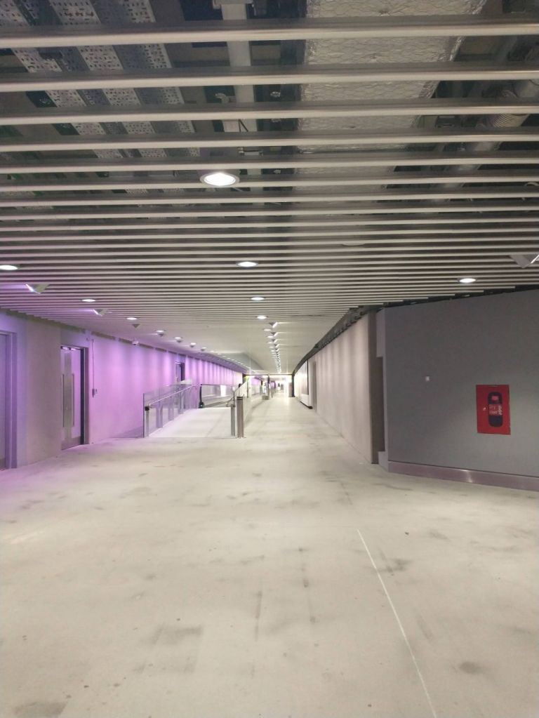 At the airport, we hung out at the lounge, had dinner and drinks, then walked down to our gates – OMG – is this really London Heathrow? The underground walkway between A and B and C concourses in Terminal 5 looks like some apocalypse Night of the Living Dead scenario – there isn’t another living soul around! I’m trying not to joke about the current nuclear threat…so…let’s not go there! Still, creepy, huh?