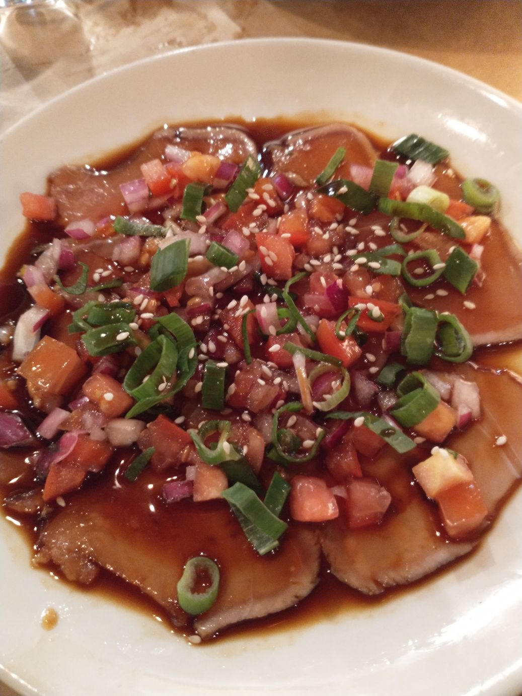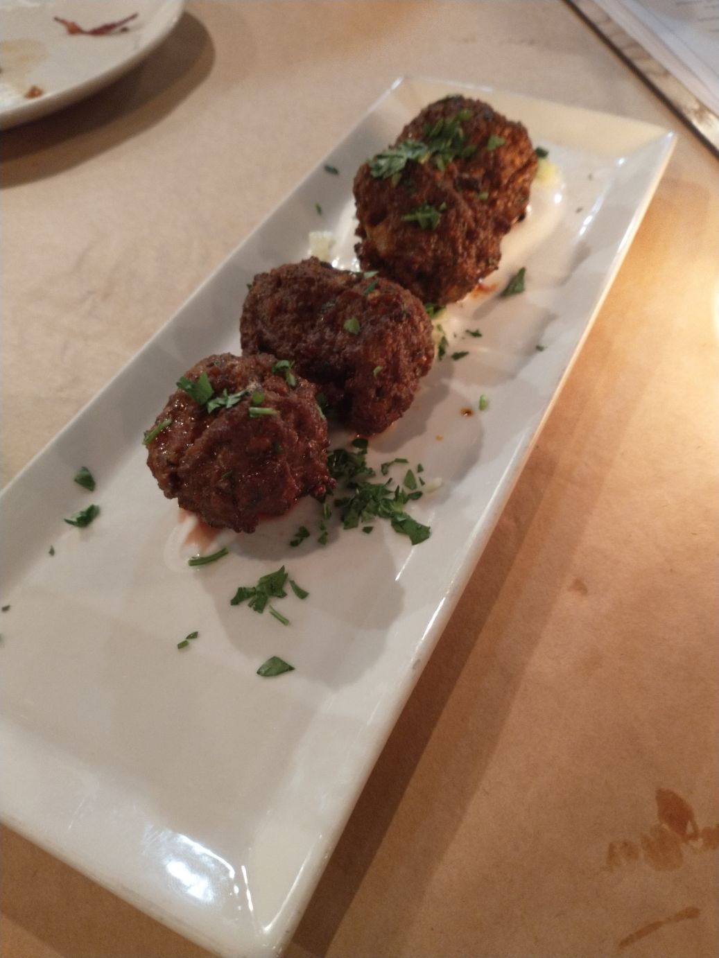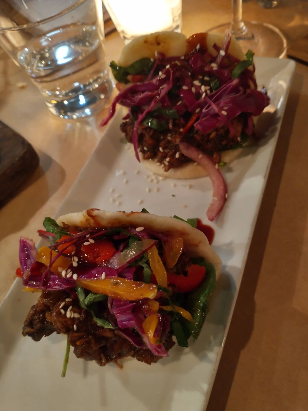 Even though they were small plates, there was so much food! Crispy squid, tuna carpaccio, lamb meatballs, Boa buns with teriyaki beef, pulled lamb and feta spring rolls and pork rillete- which was way too much for me – I barely ate that terrine at all! Totally scrumptious and we are full, full, full and happy to have at least a little bit of a distance back to the hotel to walk off all this great food.