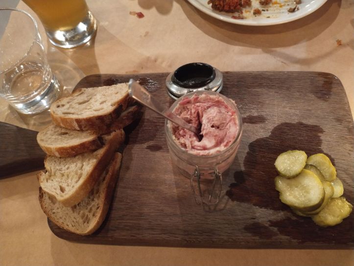 We are on our own tonight and tomorrow, all day, before the tour, so we have scoped out a couple of places we want to eat (is anyone surprised? No, didn’t think so.). Tonight it is Bouchon – not at all like our Bouchon at home. This Bouchon is a small plates restaurant, more reminiscent of tapas than French, with an excellent selection of dishes. We had booked a reservation – thankfully – because the place ends up being jam packed fully booked! We can see why – it is totally worth it!