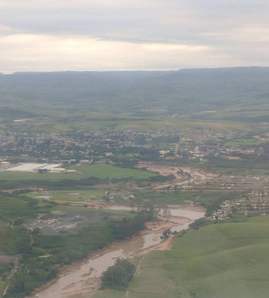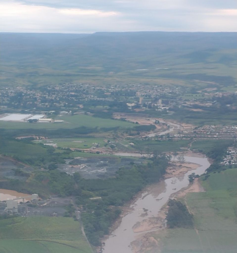 As we begin our descent into Durban, we can begin to see the destruction from the recent floods. The rivers are so swollen, the banks carved out of mud as the water overflows. So awful how the weather has changed so dramatically and dangerously.