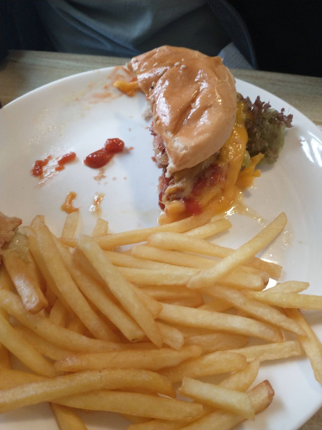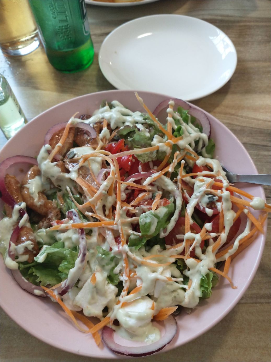 Arriving in Saint Lucia, we have time for lunch at one of the many restaurants lining the streets. There seems to be some good options, but as we exit the bus the skies open up in a torrential downpour making our restaurant choice for us! The van is parked outside the Hippo Café, and well, since that is what we are here to see – and since we don’t want to be drenched wandering around looking for lunch – this is the place. We have the run of the place, as it is completely empty, and snag a table right inside the open doors. The menu has a ton of items, and we decide to share a chicken salad and burger – which are both excellent and huge. The only snag comes when I order wine – she brings me red, and when I tell her I wanted white she confers with another waitress and comes back and says they have no white wine. Well, bummer, but I have water, so who cares.