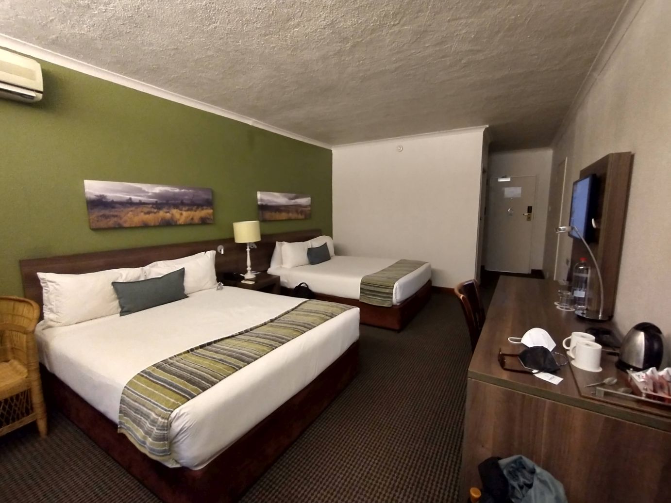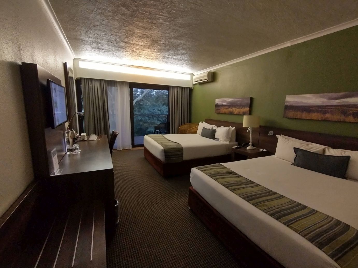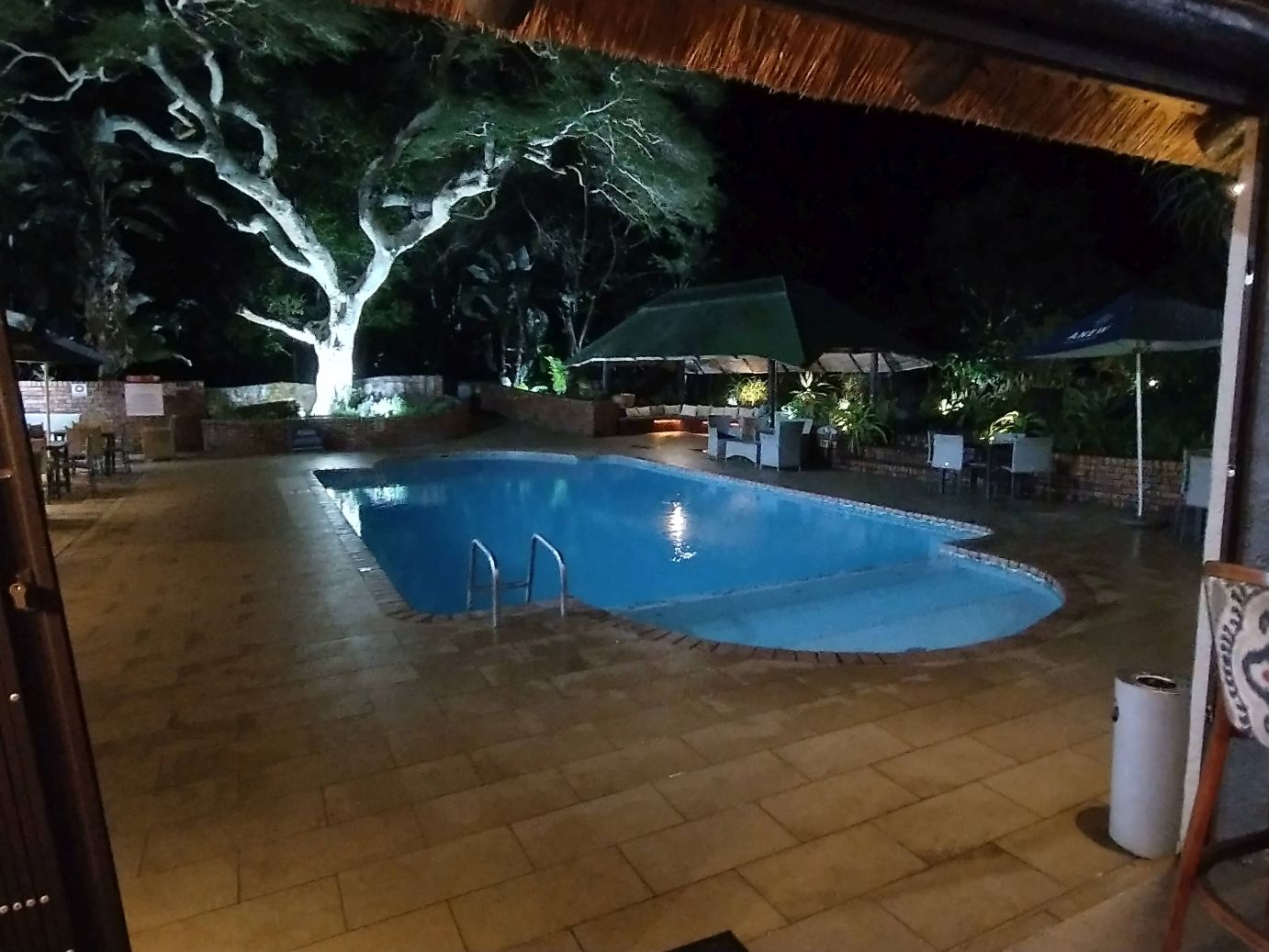 Back on the van, another 2 hour ride takes us to the Anew Hotel near Hluhluwe-Imfolozi game park. Here we check into our one night stay in a fabulously huge room with an excellent balcony overlooking the gardens. Dinner is at the hotel tonight, with a stop first at the cool outdoor bar that sits at the end of the lighted pool. What a fantastic property!