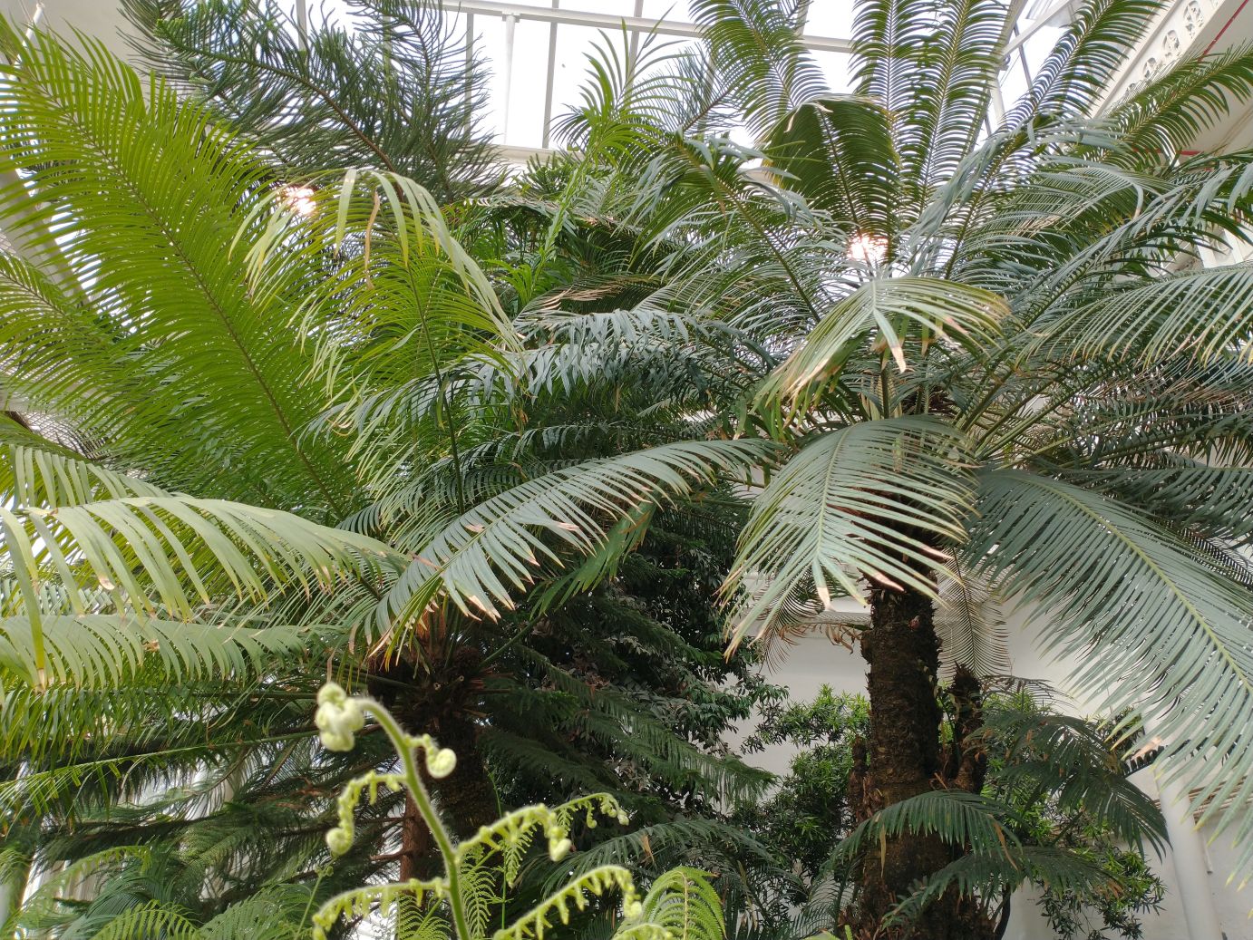 On that note…well…we try to just ignore it – things happen – and we move on down to the first greenhouse, the Palmehuset, where the high school students are all filing in. Oh well – we’ll just skirt around them with our masks on! True to its name, this greenhouse has a huge palm tree garden in the central room, and lots of lovely flowers in the side rooms.