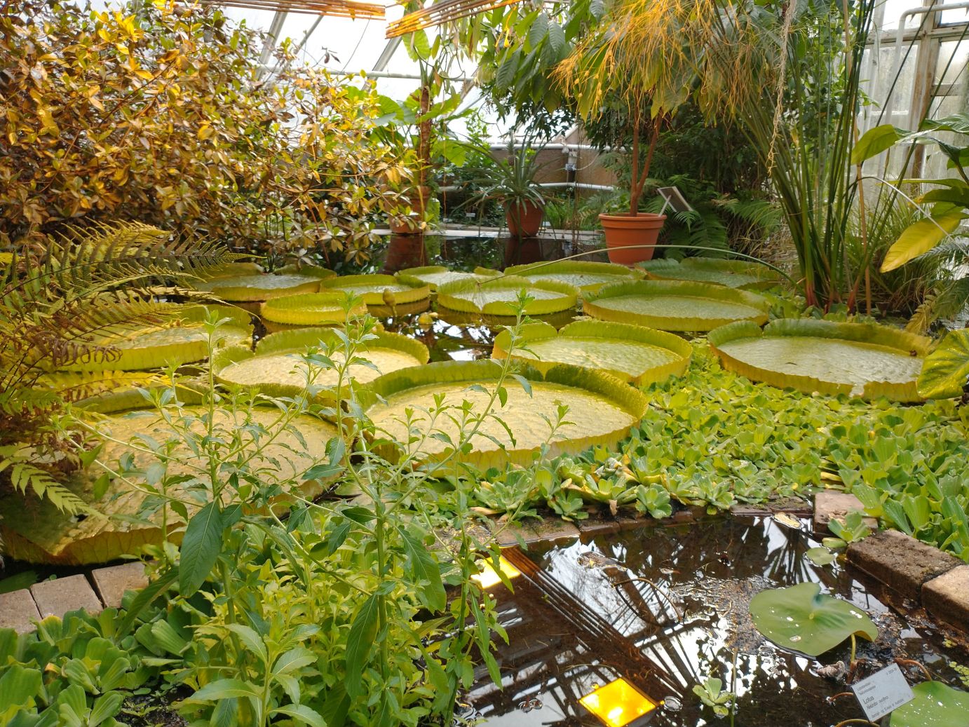 The next greenhouse is filled to the brim with a younger class of children, all surrounding the big lily pond in the main room. We skirt around them as well, going to one of the side rooms where various plants are flowering there. Then we move through the back side of the main room to take pictures of the lily pond as well as the nice little displays of rice plants, pepper plants and the like.