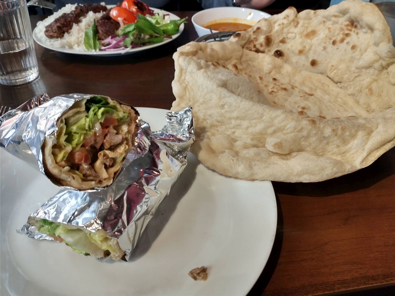 Our visit went entirely more quickly than we anticipated, and now we have the whole rest of the day to wander about. Heading back toward the apartment, we begin to look for lunch places and stumble upon a Turkish-Iranian area where there are tons of shwarma and kebob places. We sort of pick one at random, a little corner place called Mardin. We are a little concerned as we are the only customers there, but the owner is so welcoming and sweet that we can’t walk out now.