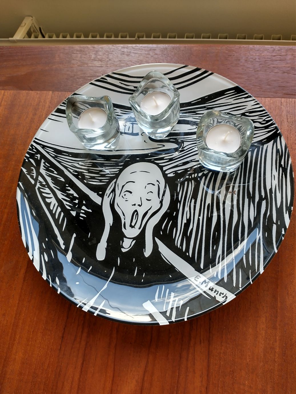 Then it is back down to The Scream, where the lithograph is on display. Now this is more what we’re used to seeing. It’s the black and white versions that abound everywhere – and that is why the color version seemed so odd – at least to me. Aha! That’s now all figured out. (As a matter of fact there is a b/w scream platter in the apartment, which reinforces the whole b/w vs. color thing! Oh, and it is totally cool and I really want to steal it, but I’ll be good…I promise….maybe…..)