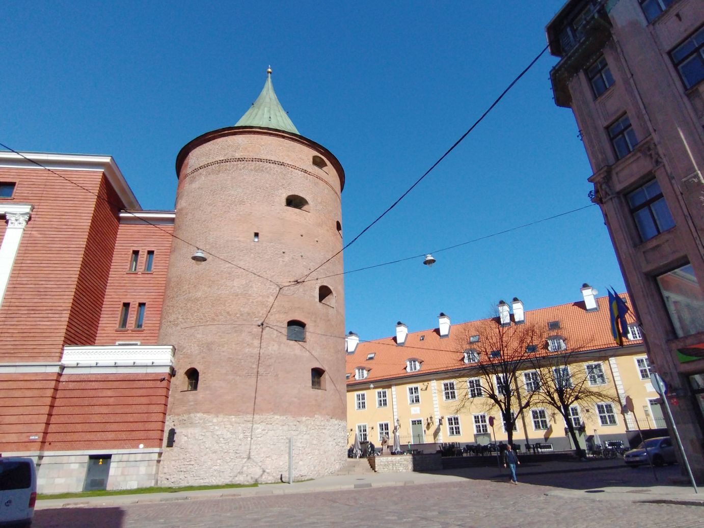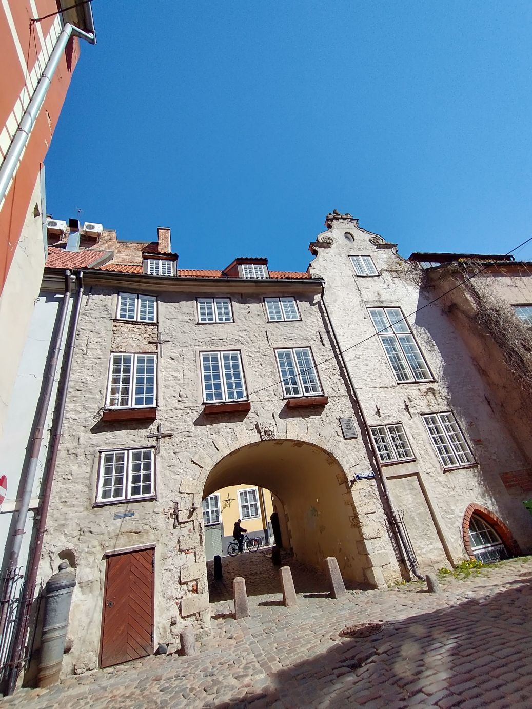 Our walk continued past the Reveal Riga museum building with the impressive wench at the apex of the roof that was used to lift grain and other material up into the building in centuries past. Then it was onto the Swedish gate which was used as an entrance to old military barracks, past a statue of the ghost of Riga as well as the Powder Tower, used as part of the defensive systems of the old town.