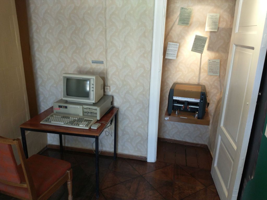 The museum turns out to be free, but also full of students on a class trip. Yikes. Well, masks on, we bravely scoot out of the first floor where they all are listening to a lecture and make our way up to the 2nd and 3rd floor for interesting exhibits on the timeline of the 1990 declaration of Independence of Latvia. Lots of good reading, as well as recreations of period offices, equipment and machinery used during the Popular Front years. There is also a kitchen set up, that was designed to be used for guests of the PFL, but the china was never used because it was so expensive to purchase, they wanted to save it.