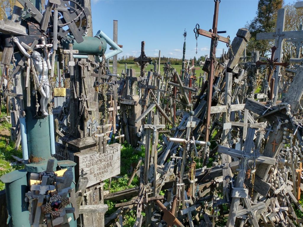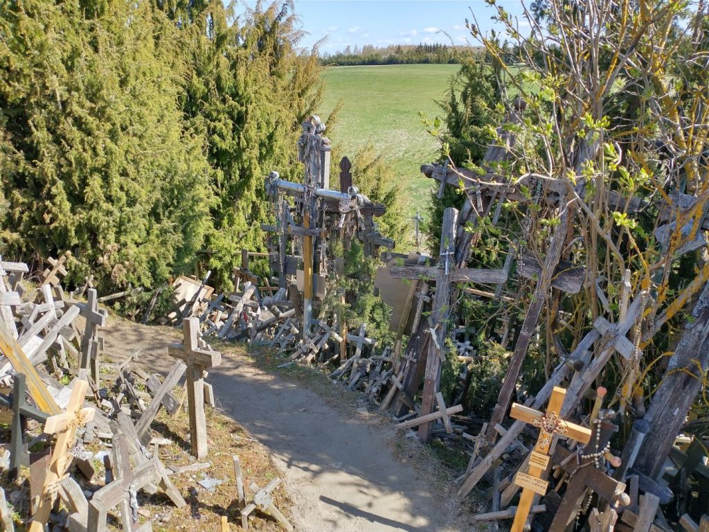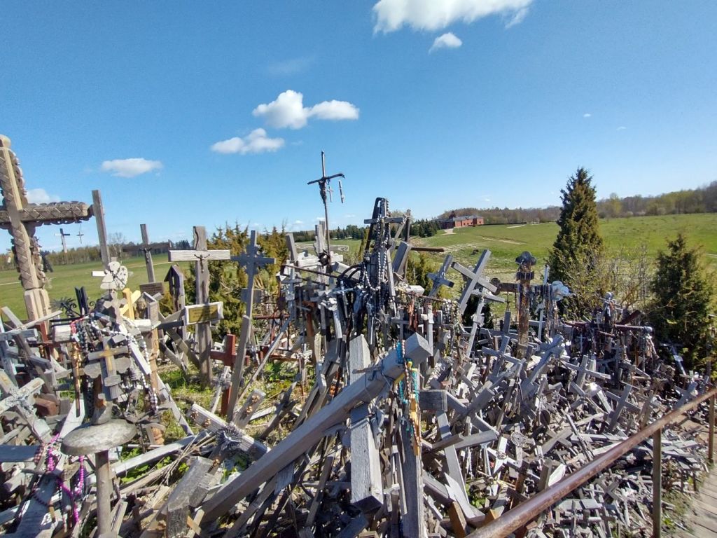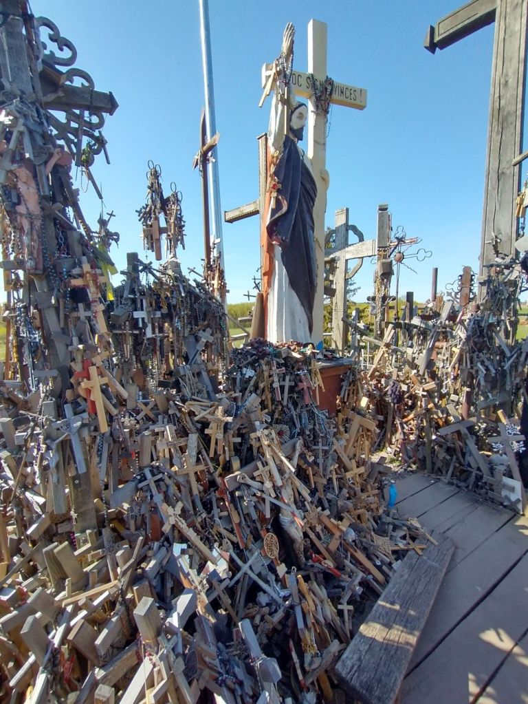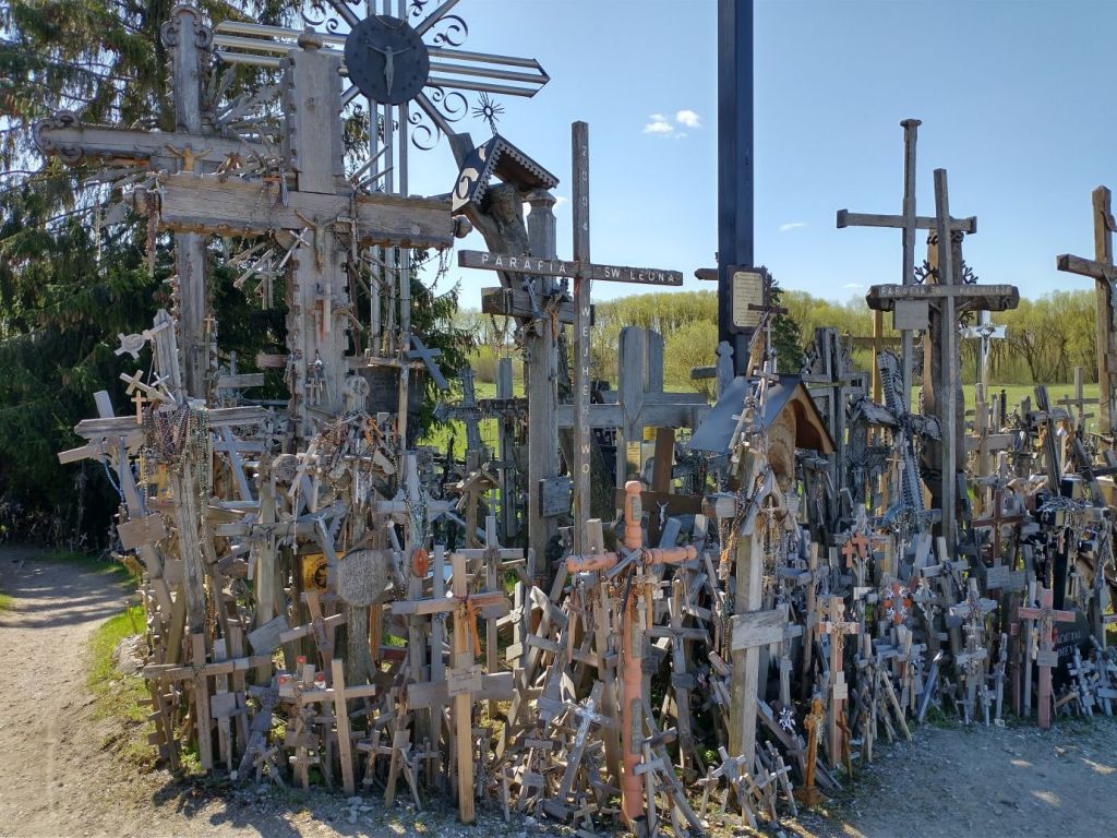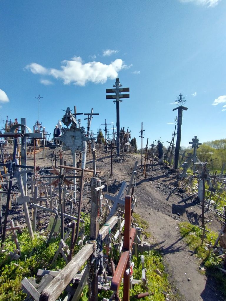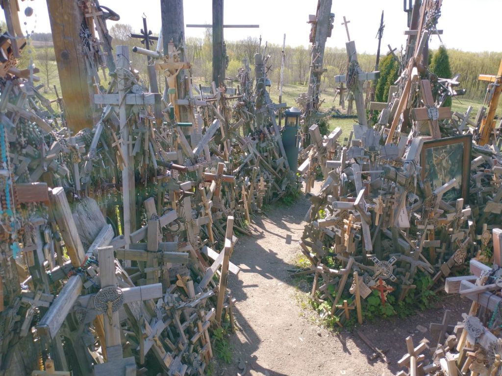 After another hour or so, we stop at our sight seeing for the day – the Hill of Crosses. Ok, well, whatever. But, to be totally honest? It is WAY better than it sounds! Literally a hill with thousands upon thousands of crosses placed upon it. The legend goes that a peasant fell asleep on the hill one night, and in his dreams a white robed women came to him and told him he had to put a cross on the hill where he slept. If he did that, his ailing daughter would be cured. Of course the peasant listened, erected a cross, and when he arrived home his daughter ran out to him – she could walk again. After this people started putting crosses on the hill to memorialize everything from births to weddings to deaths to asking for miracles. There are approximately 40,000 1 1/2 foot tall crosses, 100 over 12 feet, 1,000 3-6 feet – at least that can be counted. The hill also became a symbol of resistance in the Soviet times.