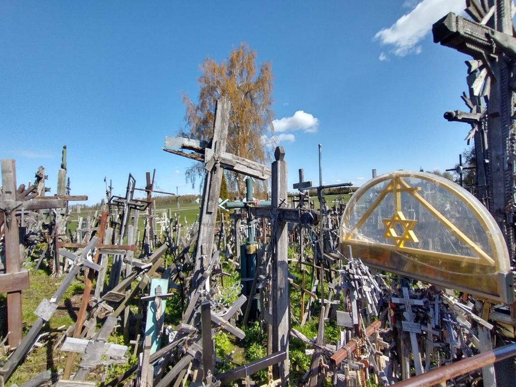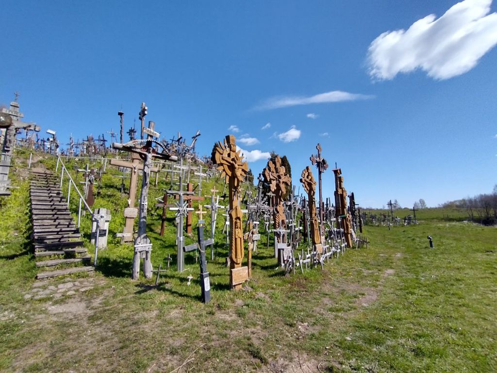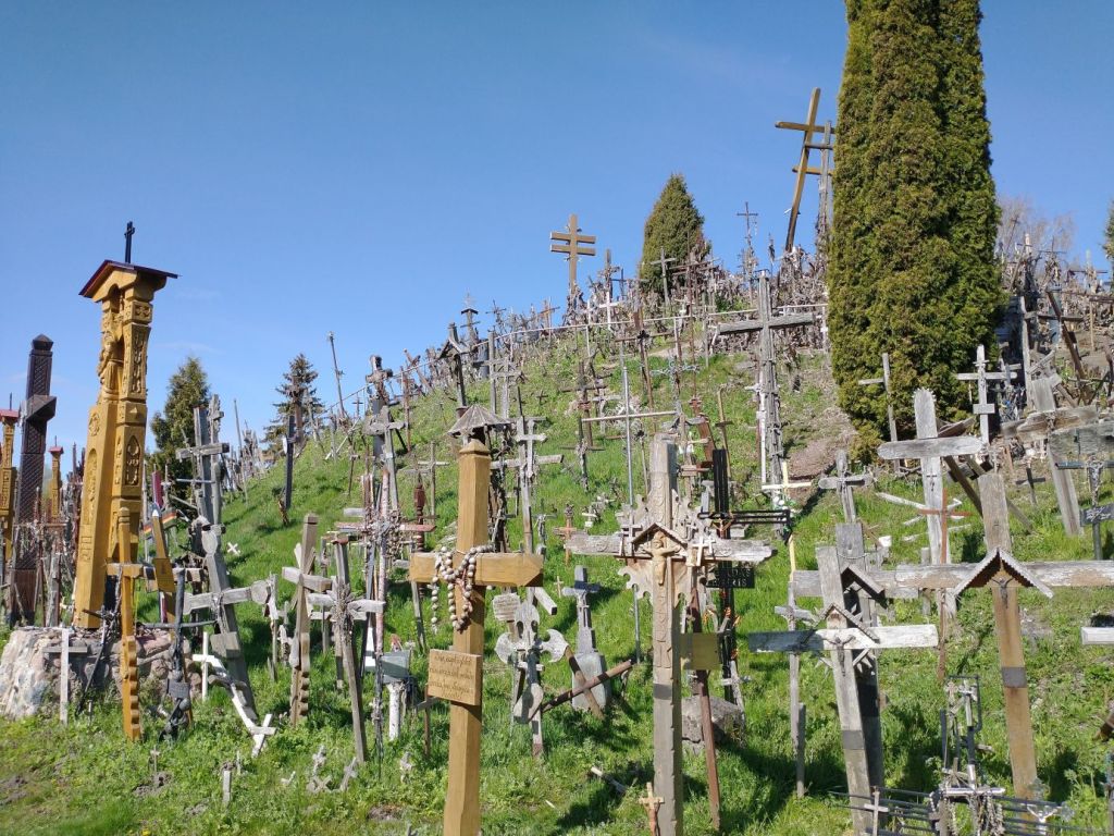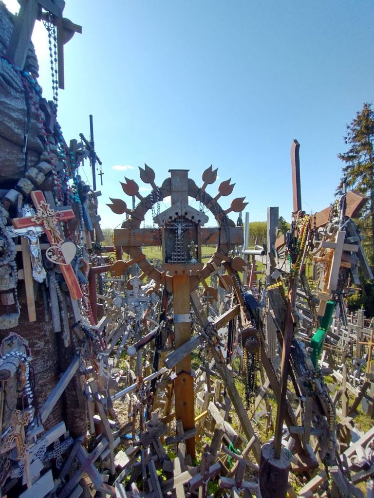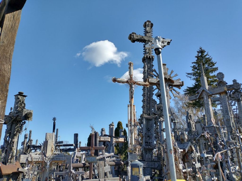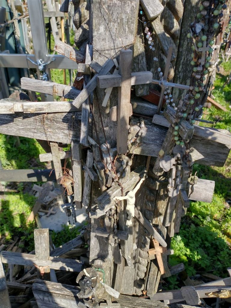 After another hour or so, we stop at our sight seeing for the day – the Hill of Crosses. Ok, well, whatever. But, to be totally honest? It is WAY better than it sounds! Literally a hill with thousands upon thousands of crosses placed upon it. The legend goes that a peasant fell asleep on the hill one night, and in his dreams a white robed women came to him and told him he had to put a cross on the hill where he slept. If he did that, his ailing daughter would be cured. Of course the peasant listened, erected a cross, and when he arrived home his daughter ran out to him – she could walk again. After this people started putting crosses on the hill to memorialize everything from births to weddings to deaths to asking for miracles. There are approximately 40,000 1 1/2 foot tall crosses, 100 over 12 feet, 1,000 3-6 feet – at least that can be counted. The hill also became a symbol of resistance in the Soviet times.