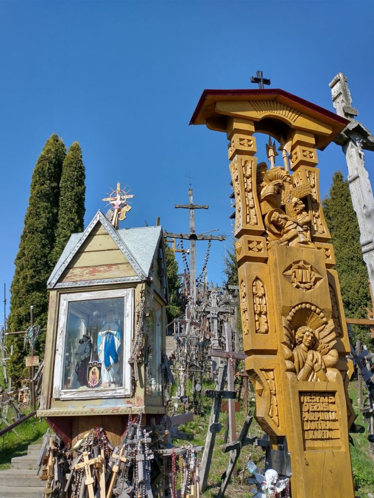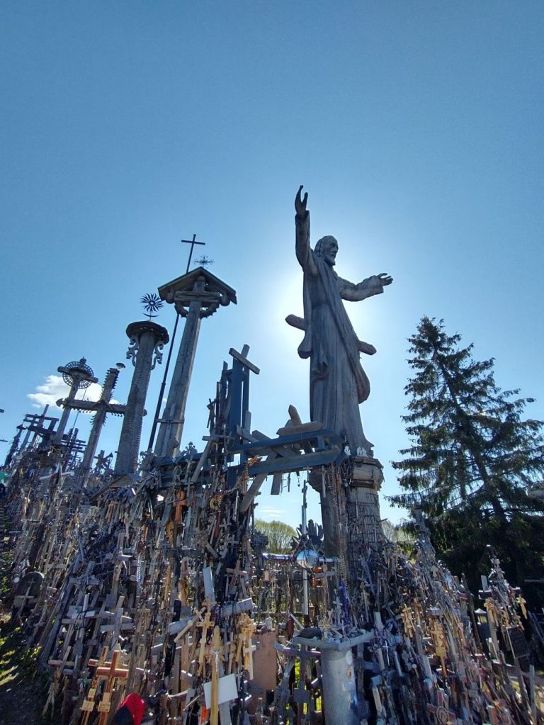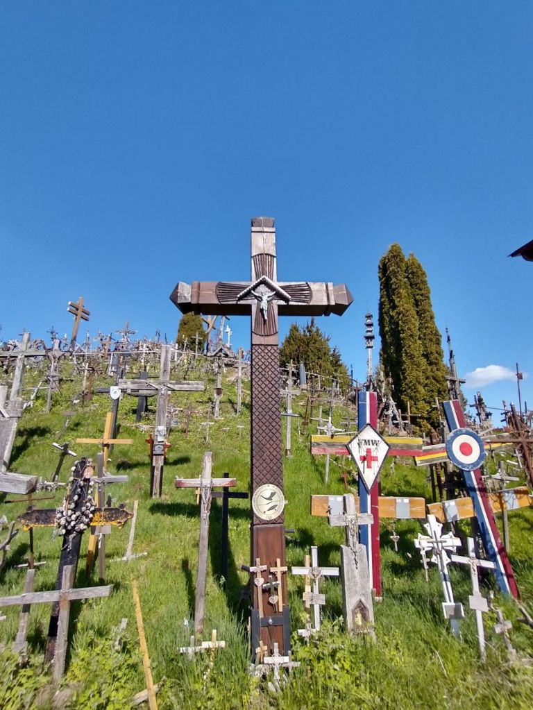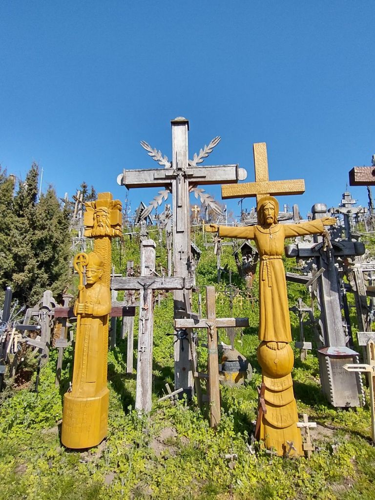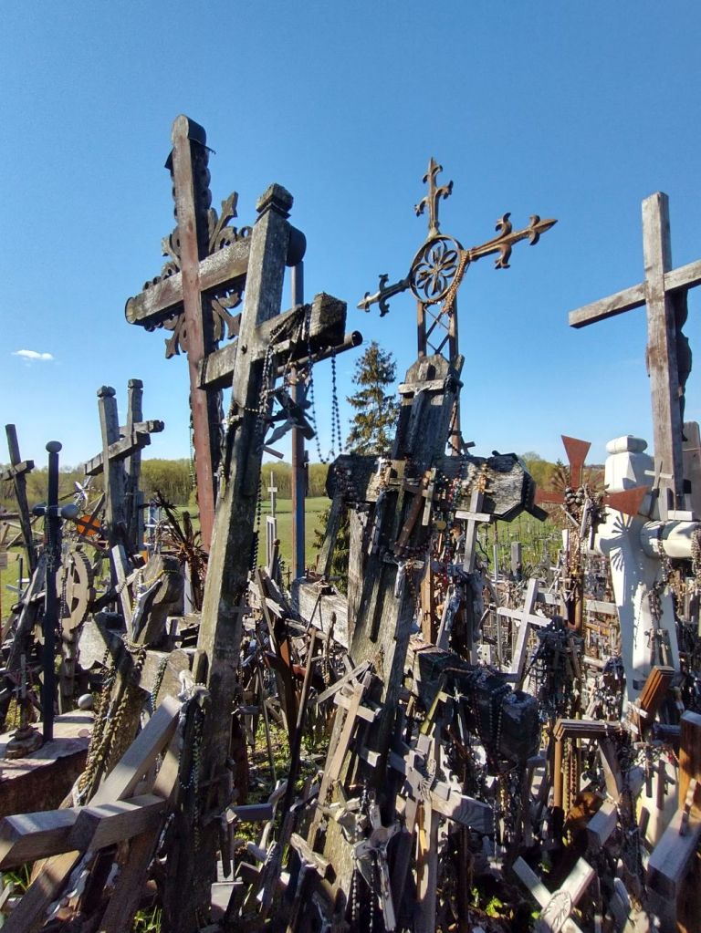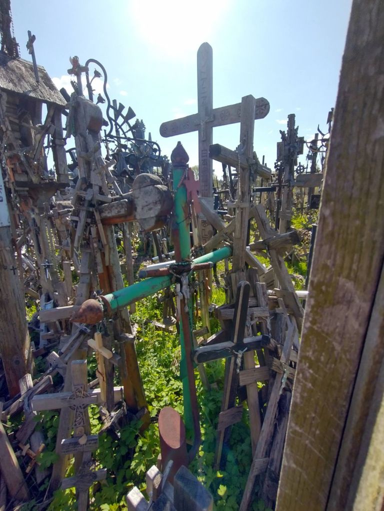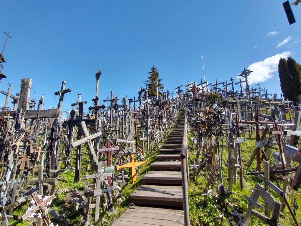 After another hour or so, we stop at our sight seeing for the day – the Hill of Crosses. Ok, well, whatever. But, to be totally honest? It is WAY better than it sounds! Literally a hill with thousands upon thousands of crosses placed upon it. The legend goes that a peasant fell asleep on the hill one night, and in his dreams a white robed women came to him and told him he had to put a cross on the hill where he slept. If he did that, his ailing daughter would be cured. Of course the peasant listened, erected a cross, and when he arrived home his daughter ran out to him – she could walk again. After this people started putting crosses on the hill to memorialize everything from births to weddings to deaths to asking for miracles. There are approximately 40,000 1 1/2 foot tall crosses, 100 over 12 feet, 1,000 3-6 feet – at least that can be counted. The hill also became a symbol of resistance in the Soviet times.