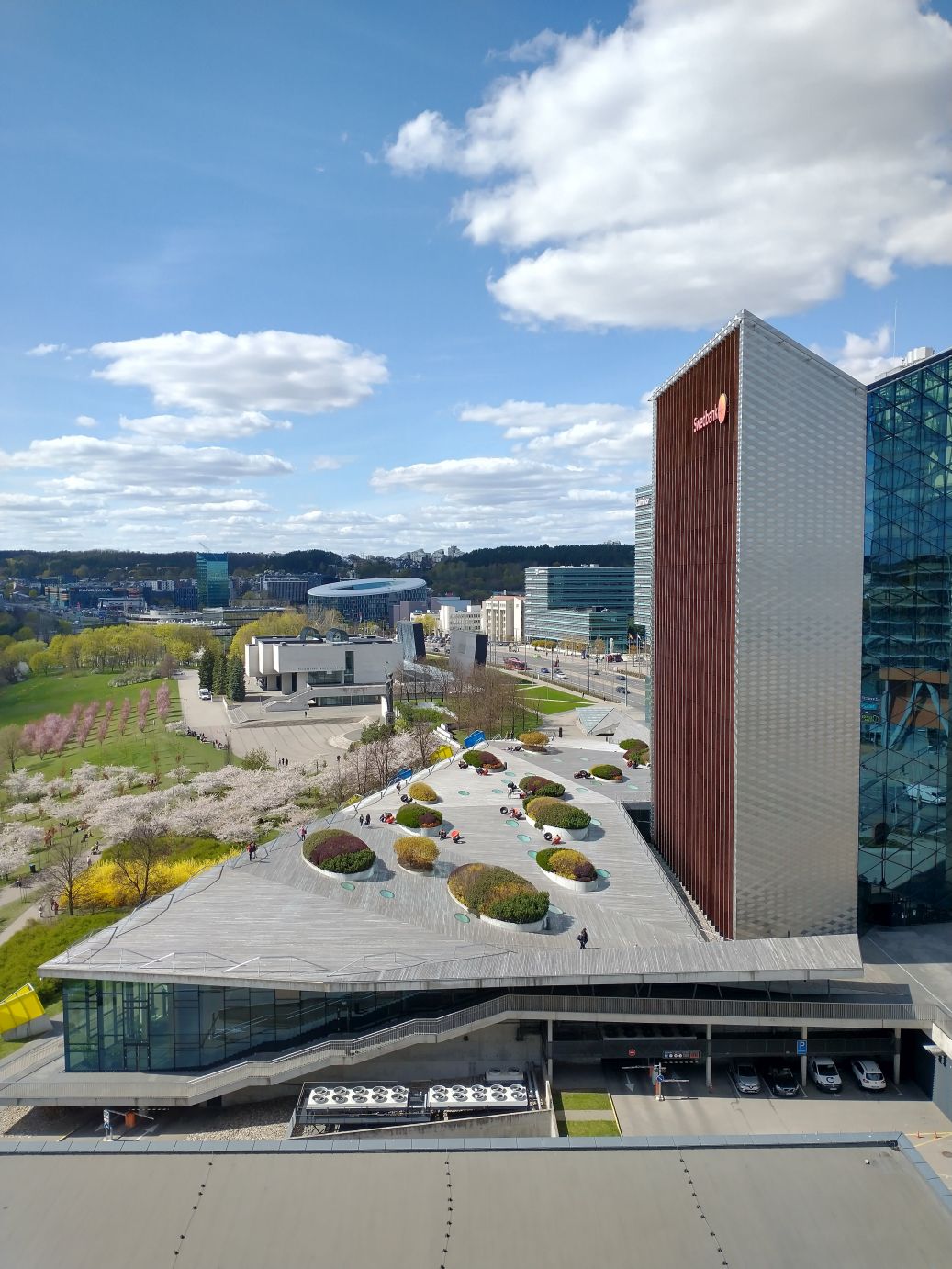After that, well, we just had drive through the countryside until we reached Vilnius, a much more cosmopolitan city than Riga. I don’t have clue what we did for lunch – maybe nothing? We checked into to the thoroughly modern hotel, ran next door to the mall for the grocery store, then organized in the room a bit – exclaiming over the brilliant view – oh – and the Putin the Hague is waiting for you banner on the huge skyscraper behind the hotel – before heading back downstairs for our KGB tour this afternoon.