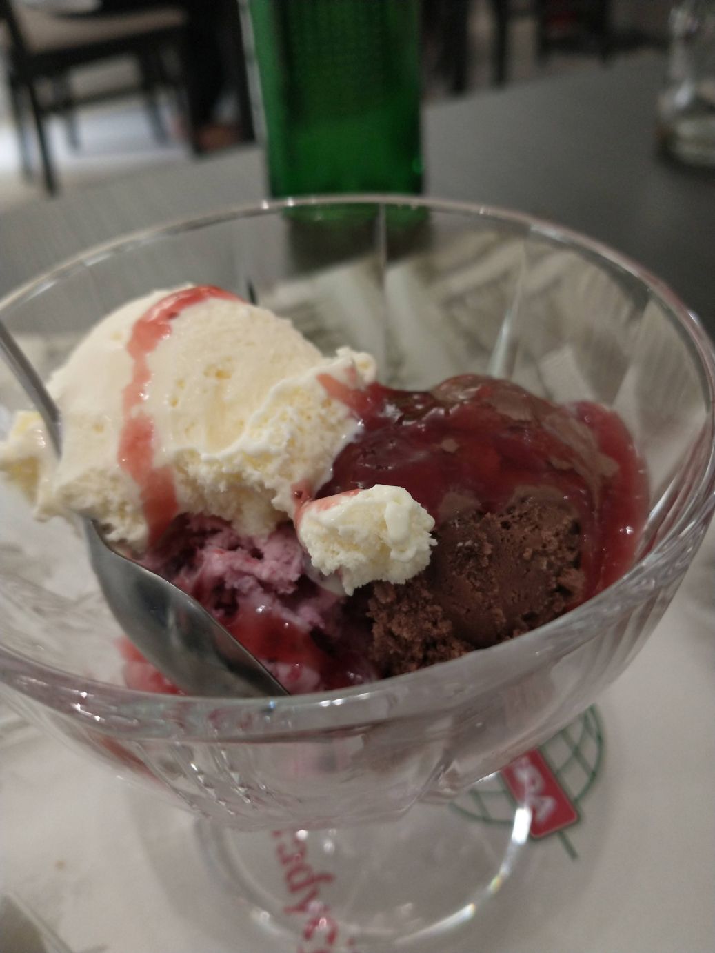 Arriving at dinner, we find that Ieva has decided that we were settling into cliques so she has assigned seating and separated us all for dinner. It actually turned out to be quite fun, and we did get to know some of the group who were previously just hanging together on their own. Food was good – tomato soup, a pork chop, thankfully with vegetables, and a good chocolate topped cheese type cake.