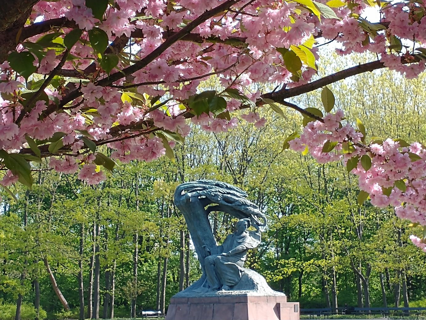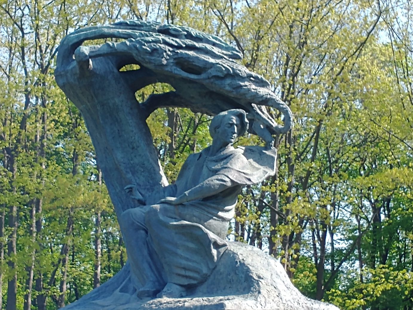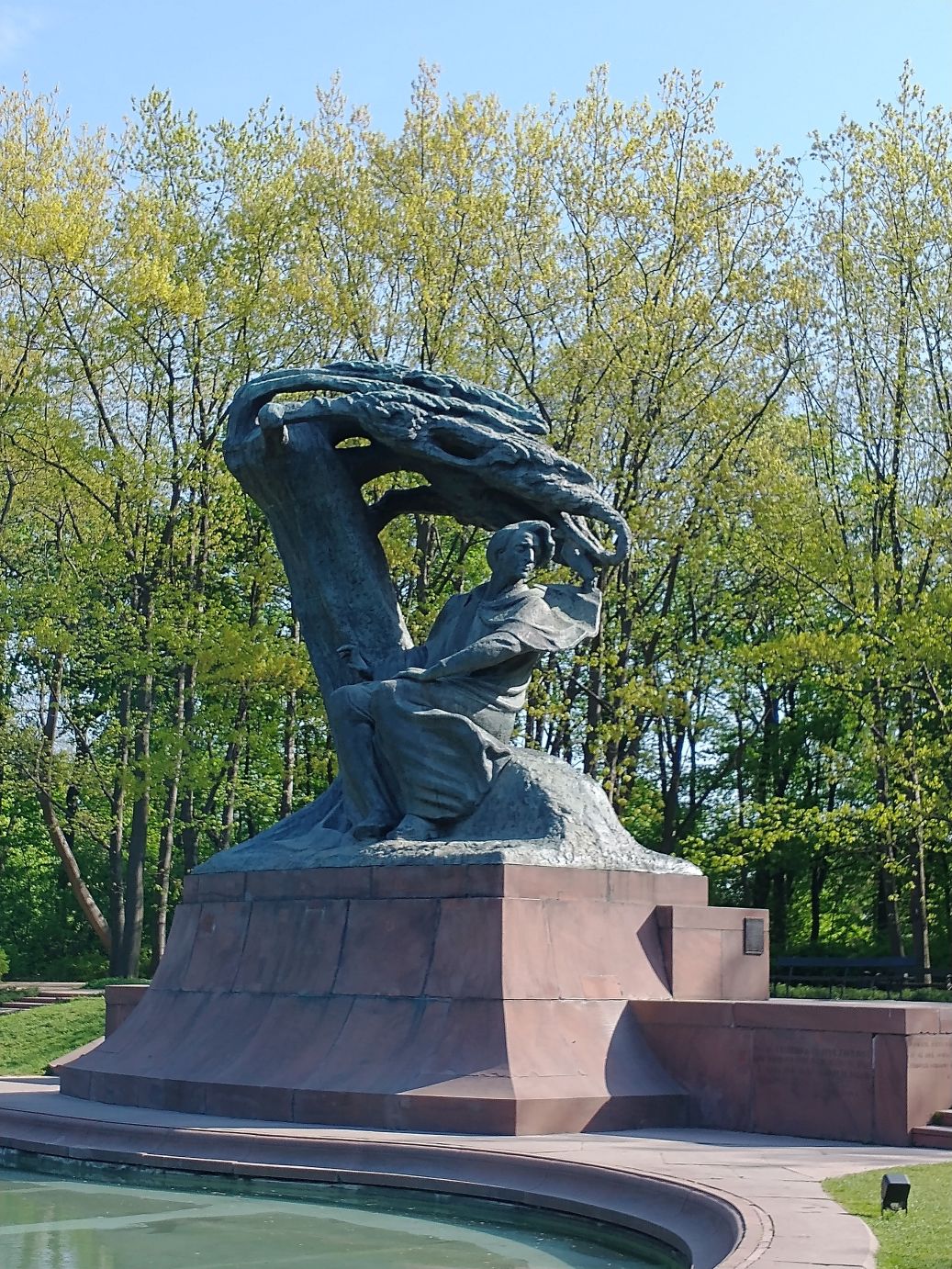 The group tour this morning starts off with a quick city tour in the bus. First up, right around the corner from our hotel, we pass the Palace of Culture and Science, a mammoth art deco building that is the 2nd tallest in all of Poland. From there, we circle around to Ujazdow park to walk past the Josef Pilsudski statue (considered the father of modern Poland) and on into the park to gaze up at the impressive Chopin memorial, whimsically sitting at the head of a lovely fountain area.