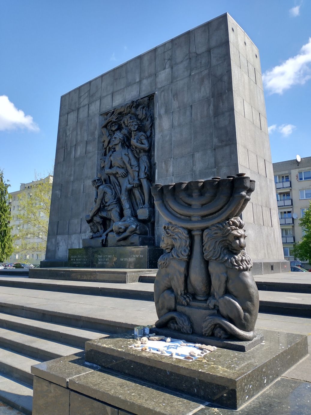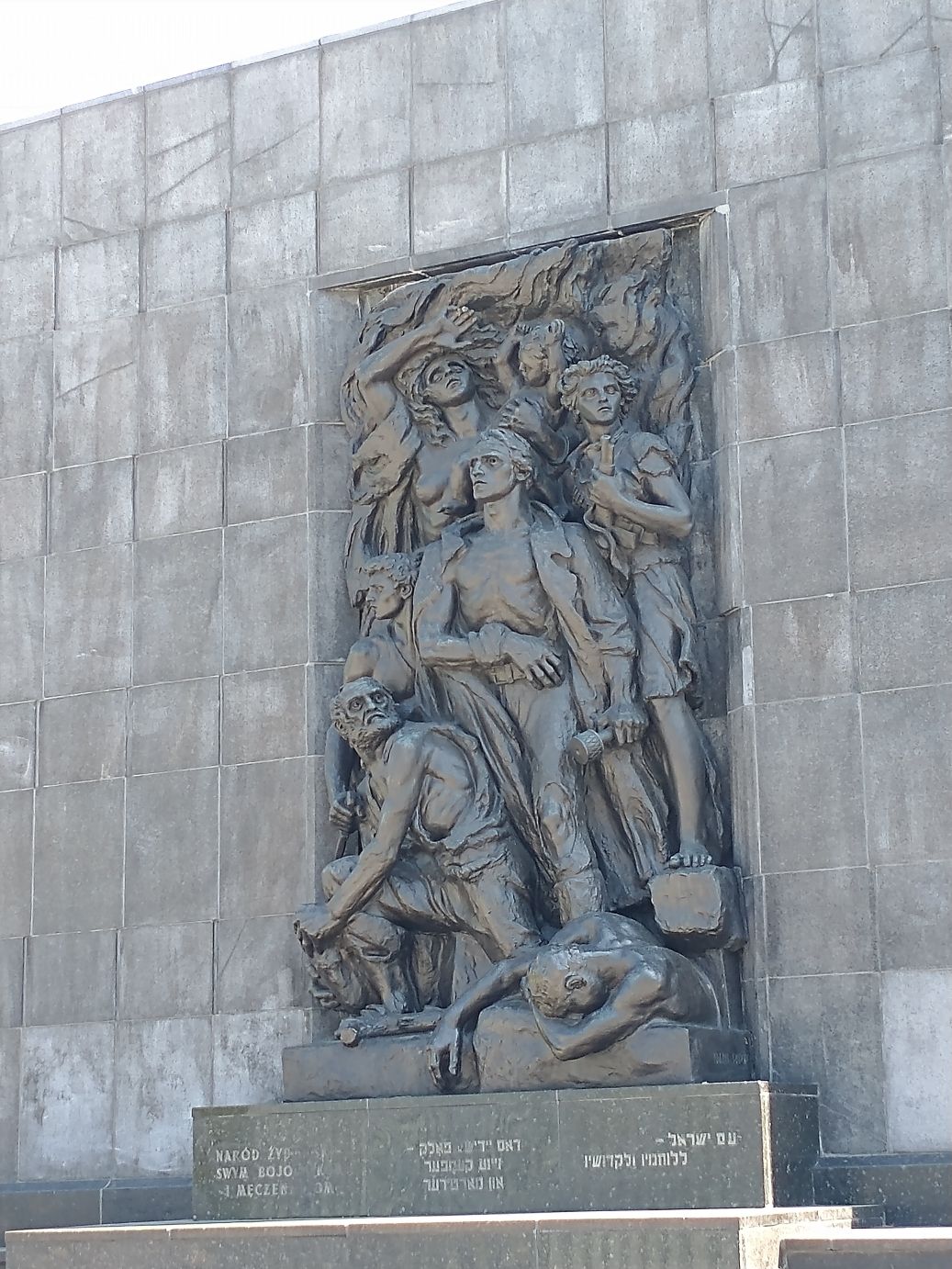 Working our way back through the city, we pass the Umschlagplatz Monument located in the holding area where the Jews were assembled to be shipped out to concentration camps, and then onto the POLIN Museum of History of Polish Jews. This is only a rest stop though, we aren’t actually visiting the museum proper, just the upper lobby with the Righteous Among the Nations medal, then it is outside to the courtyard area for an explanation of the Ghetto monument in front of the complex.