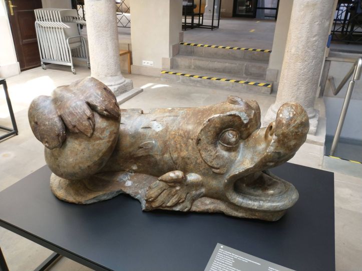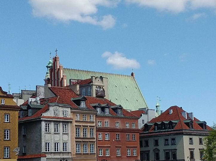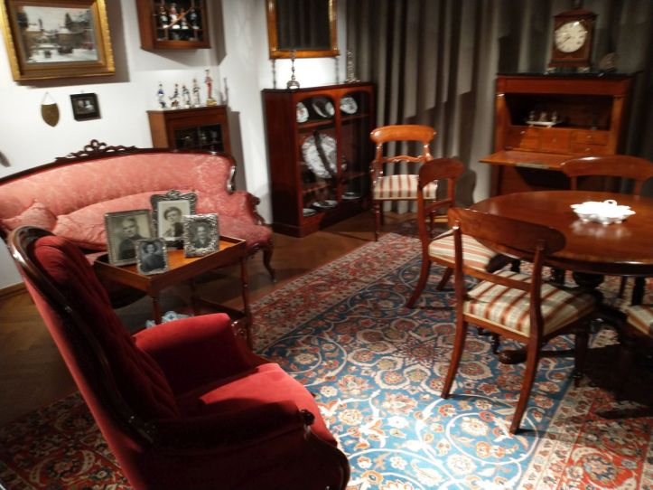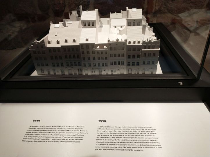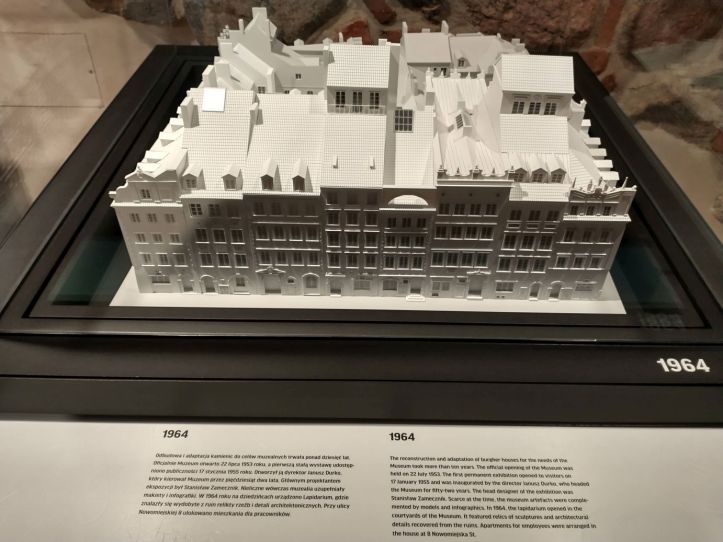 We left the rest of the group after the tour and began our wandering around Warsaw, filling in the gaps of places we didn’t see 8 years ago. First the Museum of Warsaw, right on the corner of the Rynek Starego Miasto, which had a great overview of the history of Warsaw, a fantastic progression of the building, destruction and reconstruction of three burgher houses, a rather bizarre and eclectic collection of large stone sculptures, ostensibly taken from buildings, along with a complete recreation of a typical room of a prominent Polish family, the Schieles, from the 1930s.