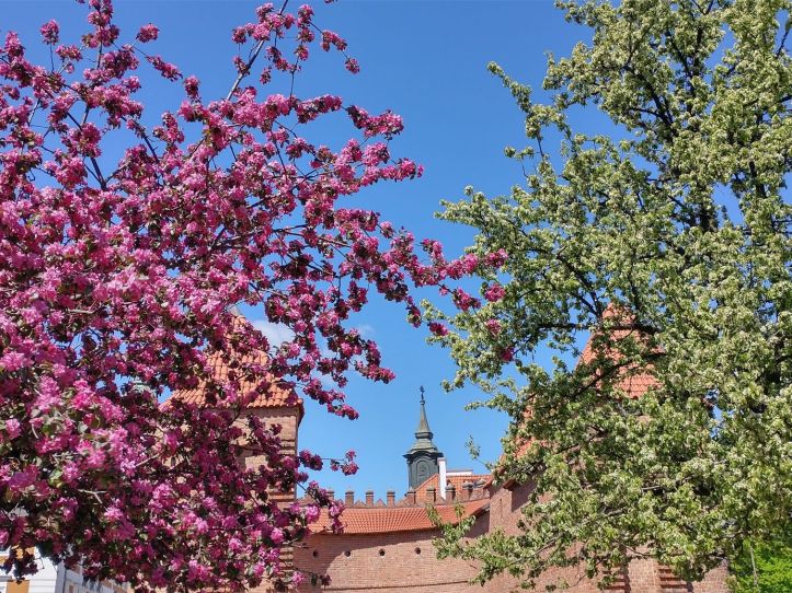 Finally, we head on into the Old Town, Stare Miasto, for a walk through all the streets and sights we’ve seen before, past the fantastic, albeit all new architecture, on to the Sigismund’s Column at the head of the old town, then into the Archikatedralna Basilica, the royal cathedral and into the Rynek Starego Miasto, the main old square of Warsaw. We finish out the tour at the Barbakan, the defensive walls built around the city, which is ringed by blossoming cherry trees and picture perfect. Even though we have done all this on our previous trip to Warsaw, it is nice to refresh our memories, and the local guide is fabulous. He’s funny and sweet and full of interesting stories. He was also totally impressed when Ed mentioned something about Esperanto – the artificial language created in the late 1800s with the idea to create a 2nd international language. He apparently has studied Esperanto, and while disappointed Ed couldn’t speak it, he was still impressed that it came up at all as he didn’t know of anyone else who was that aware of the project.