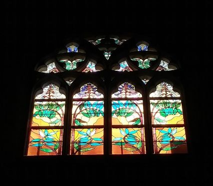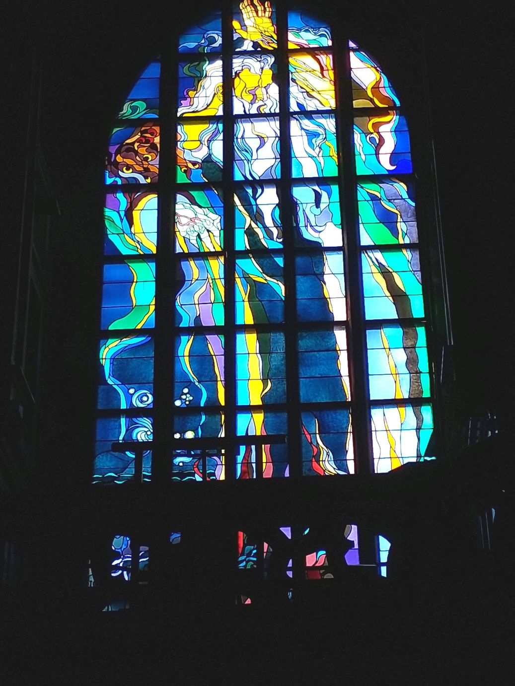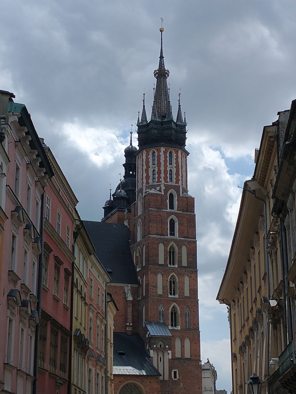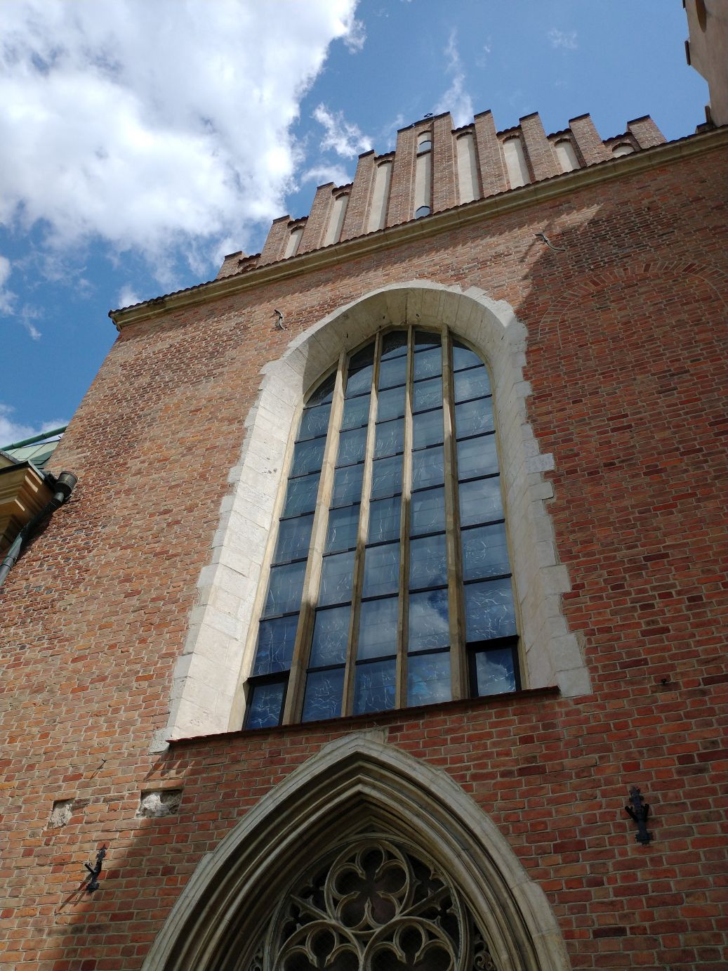 Our lunch mission complete – and totally satisfying – we head back to the Church of St. Francis Assisi, renowned for its stained glass windows. Built in the mid1200s, the Franciscan church is Gothic in style with a beautiful brick exterior. But we’re here to see the stained glass….which unfortunately is mostly behind the construction barriers blocking the Nave. Sigh. Oh well – a couple of pictures of the few windows we can see, and a chapel or two……
