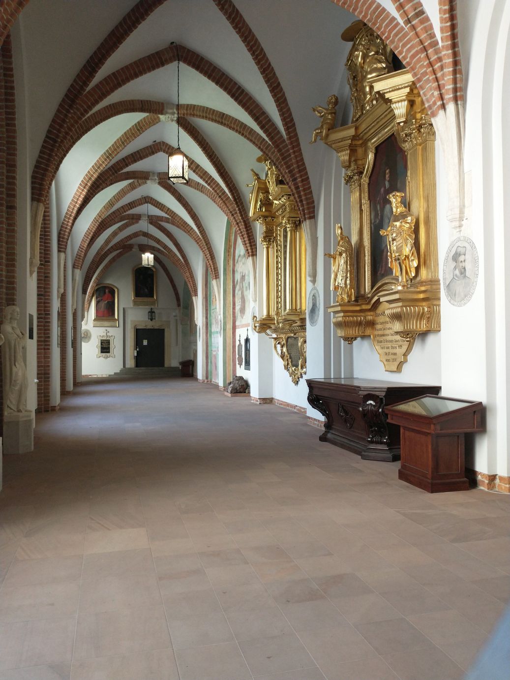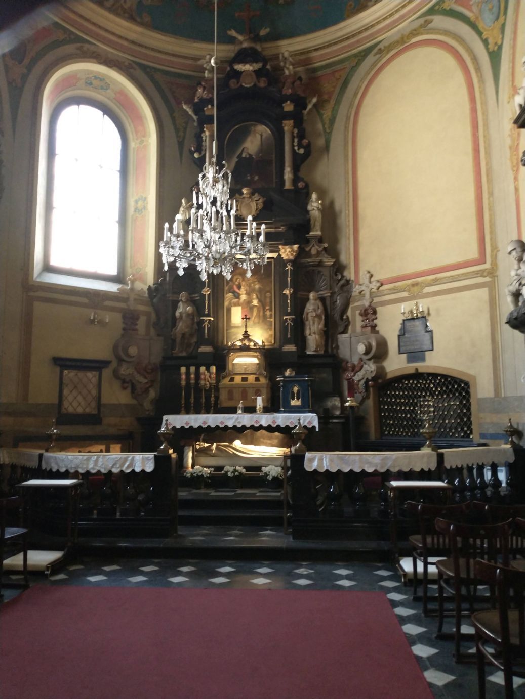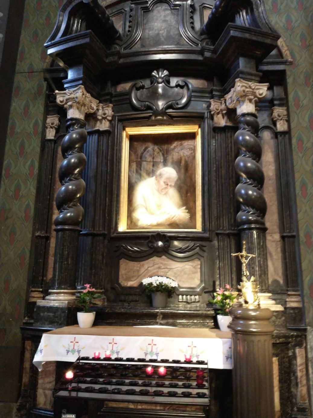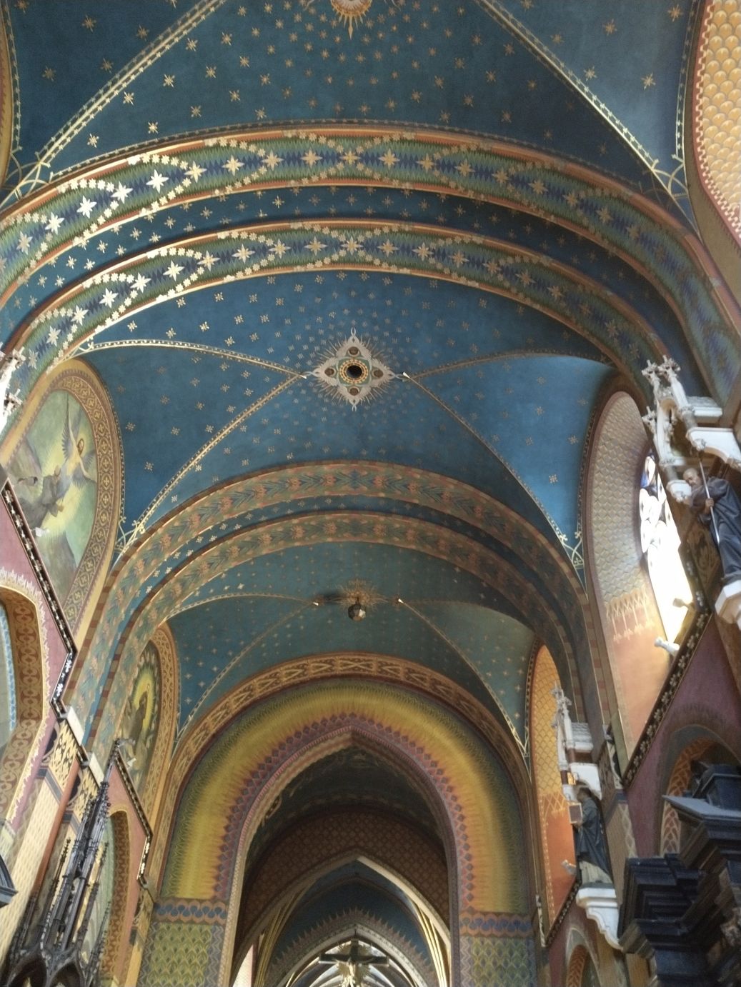 Our lunch mission complete – and totally satisfying – we head back to the Church of St. Francis Assisi, renowned for its stained glass windows. Built in the mid1200s, the Franciscan church is Gothic in style with a beautiful brick exterior. But we’re here to see the stained glass….which unfortunately is mostly behind the construction barriers blocking the Nave. Sigh. Oh well – a couple of pictures of the few windows we can see, and a chapel or two……