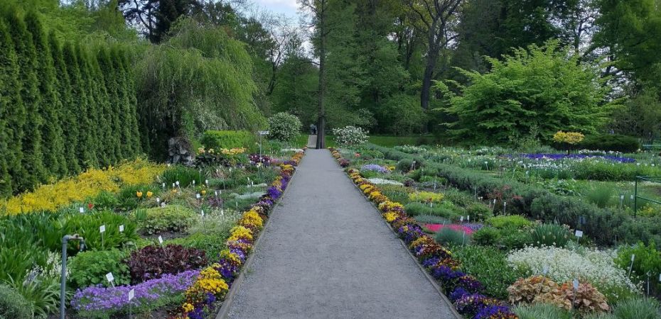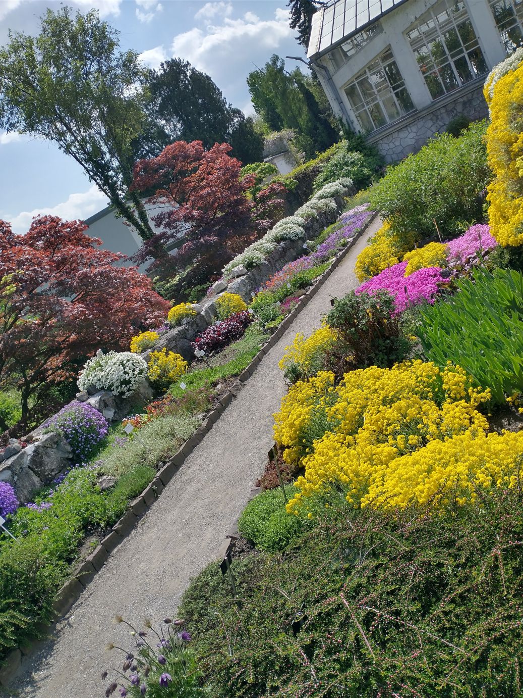 …until 20 minutes later we arrive at the gardens. They are quite pretty, all in bloom with spring flowers, and quite large actually. It is an enjoyable walk through flower beds and hidden lagoons with statuary. The beer and wine at the cafe is nothing to sneeze at either!