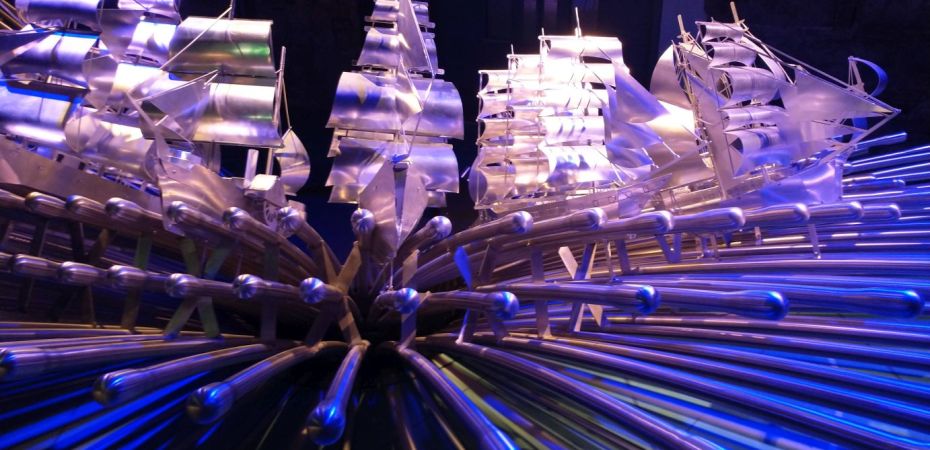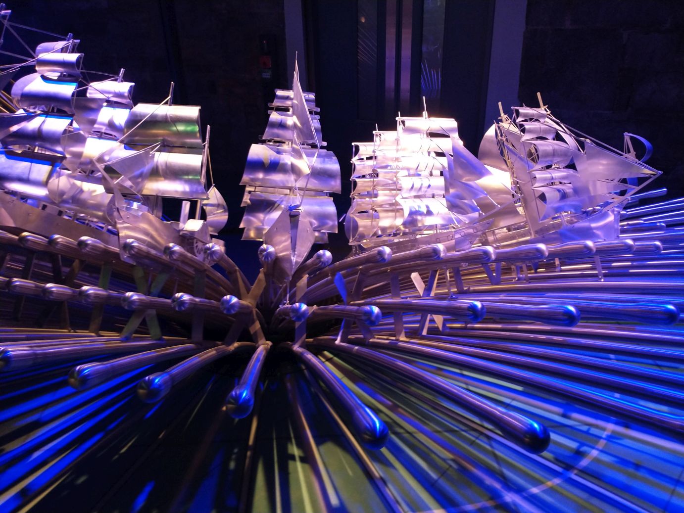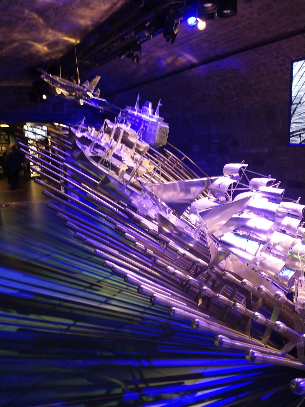 We reconnoiter our area, get our bearings then walk over to the Epic Immigration Museum which is a fascinating place full of all things Ireland and immigration. It was a nice way to spend a couple of hours getting familiar with Irish history that didn’t have anything to do with the Troubles! Oh, and there was a totally cool steel boat/ocean sculpture that we couldn’t’ get enough of – as you can see from the pictures.