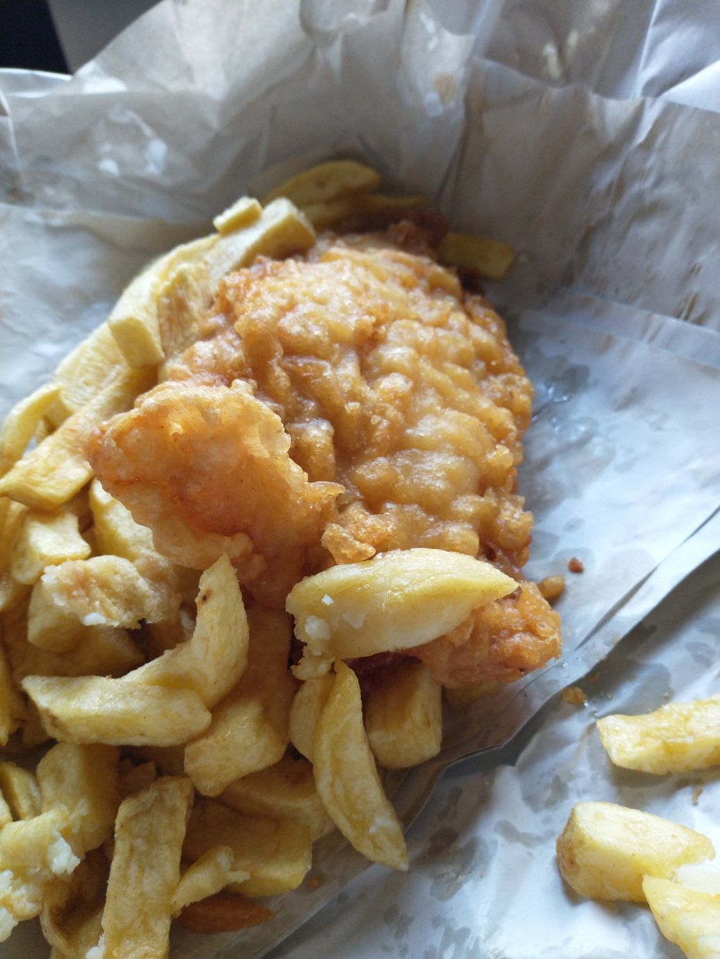 It’s a take out joint, as are most fish and chip joints, so we order our smoked fish and take it back with us to the room. Holy cow! This thing is absolutely massive and weighs about 5 pounds! Of course there are french fries and onion rings in there too, but still! But it is oh so good and well, why not!