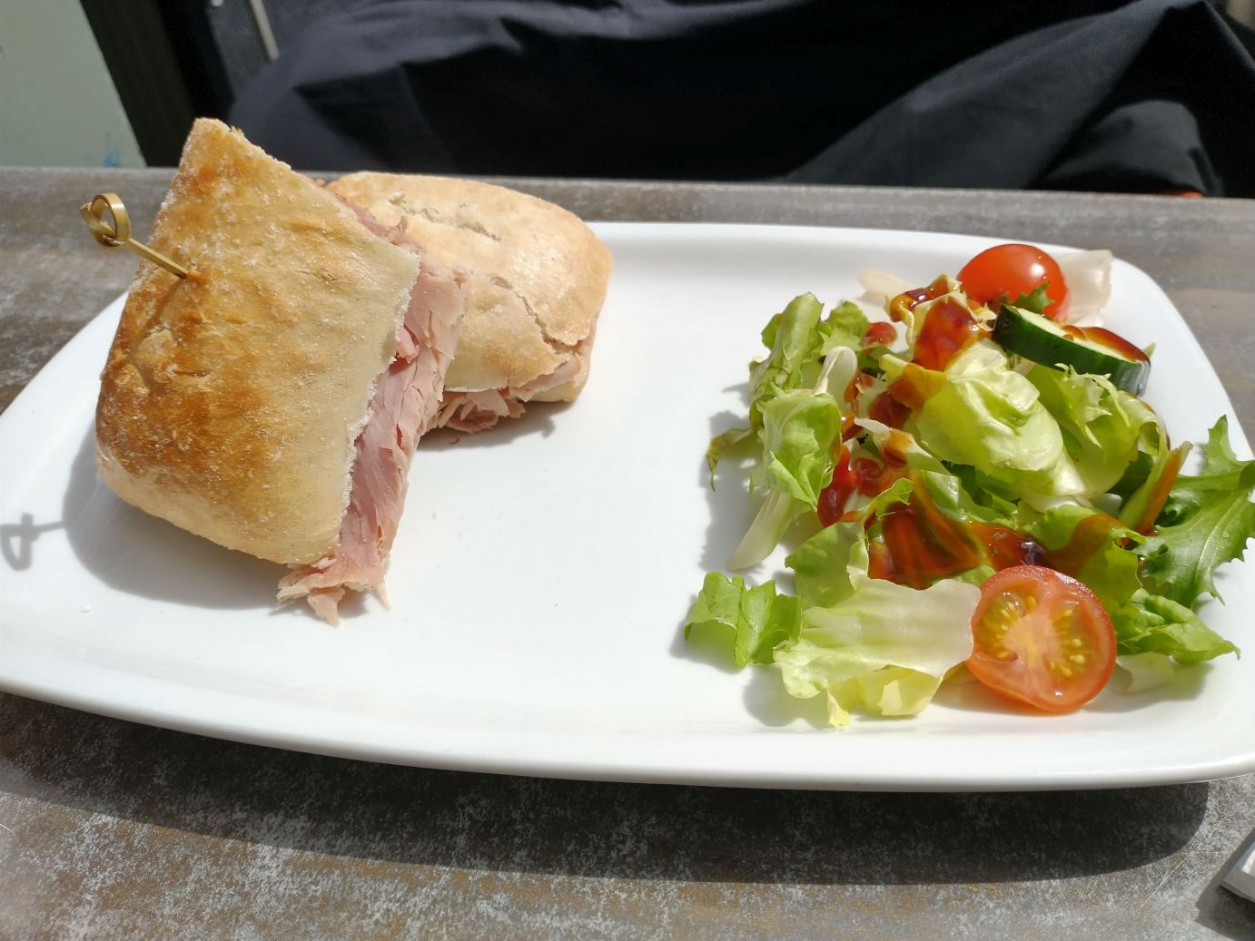 Heading out from Trinity College, we find ourselves in the same general area we were yesterday for lunch and the Rebellion tour. We wander about for a bit, perusing menus before finally settling on The Bailey Bar and Cafe for a delightful lunch of Goat Cheese and beet salad and a Ploughman’s Sandwich of baked ham, cheese and mustard. Plus we have the best time talking to our waitress who is from one of the Baltic States and is going to visit San Francisco with her mom – so we have tons to talk about!