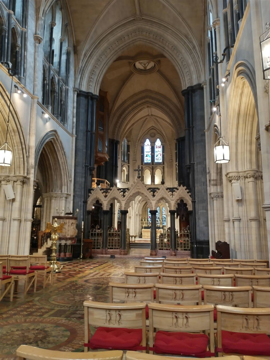 This worked like a charm. There was hardly anyone there, so we had the place almost to ourselves and could linger everywhere we wanted. Finally got to see the original tiles, which were worth the return visit, along with more close up attention to Strongbow’s tomb and the Cathedr – which we learned was the Greek word for seat and was where the Archbishop sat. Once you had a Cathedr – you had a Cathedral.