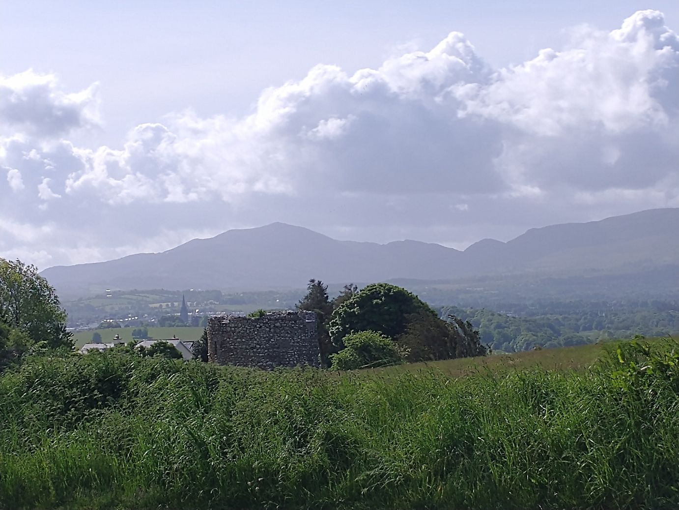 Our first stop of the day is at a viewpoint above the Lower lakes, looking out over the Killarney National Park, right near the ruins of an old Castle Keep. It is a beautiful day for a drive and scenic views so far, and we are crossing our fingers hoping the rain stays away.