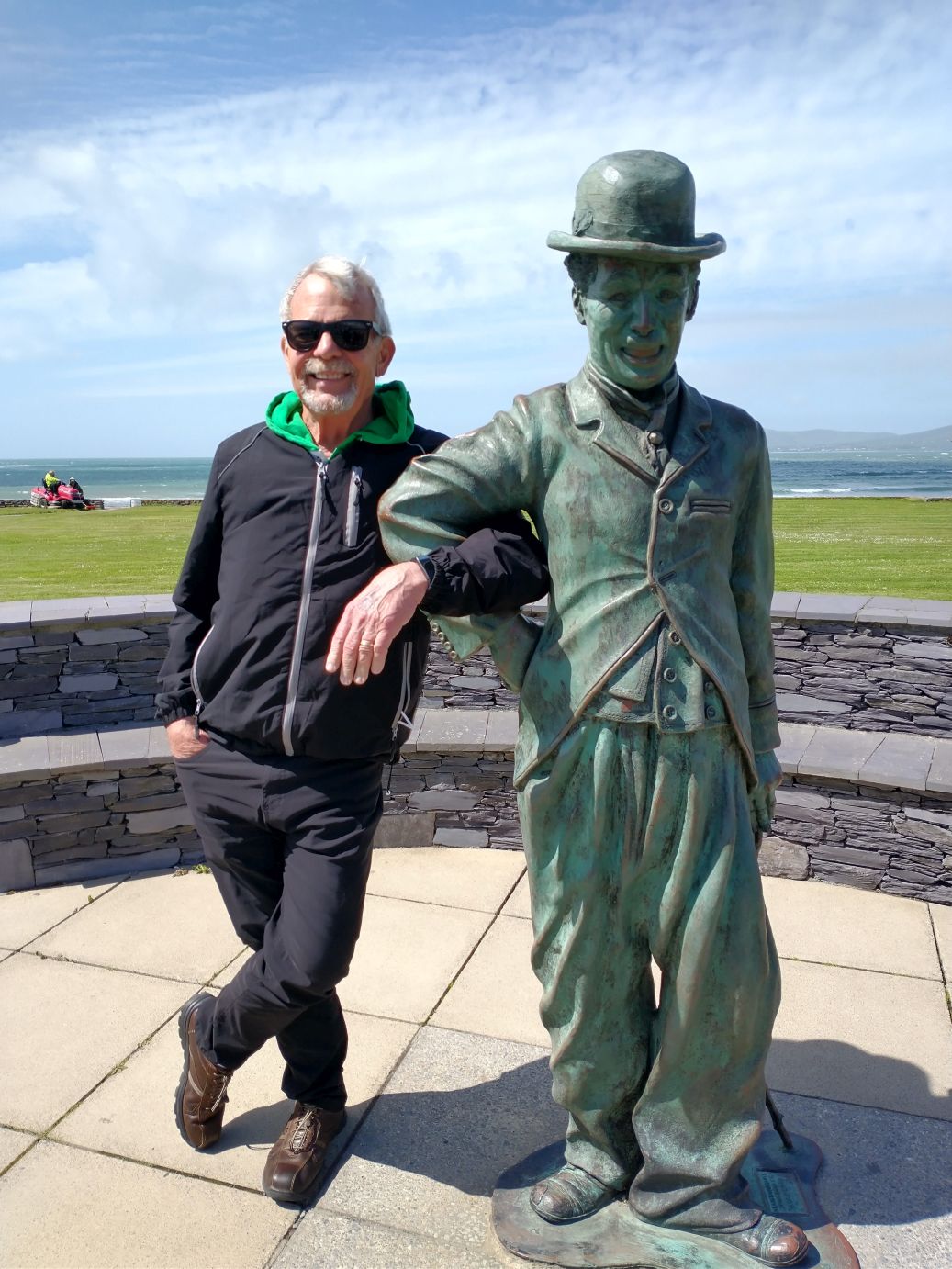 By noon, we stop in the little town of Waterville to stretch our legs by the sea side. There is a nice promenade where we can walk in the windy cool afternoon. And a statue of Charlie Chaplin! The town had it made as a thank you to him for spending his vacations there for many years. There is also a Mick O’Dwyer statue, who we learn is a well known Kerry football manager.