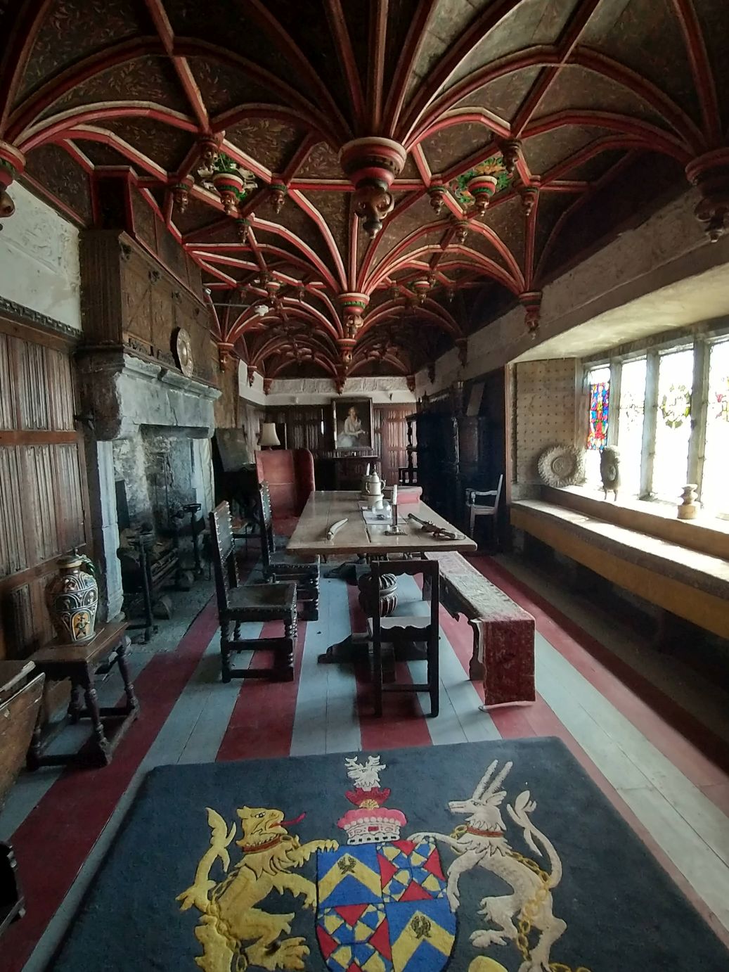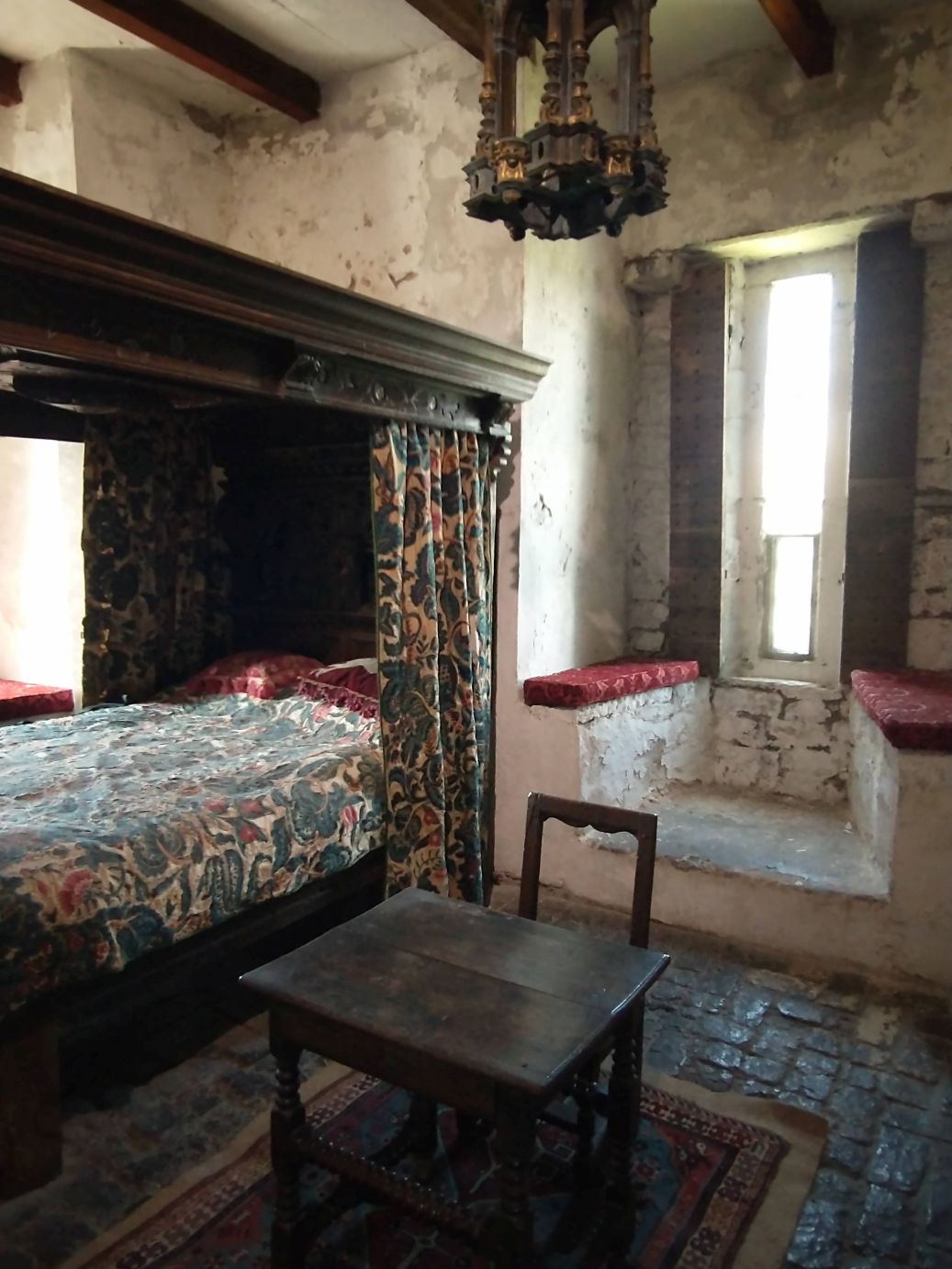 On the way back down from the roof we explore more rooms – the bedrooms, dining area, staircase with the odd bone or antler thing hanging from the ceiling. Then we are out the back entrance and into the rest of the park.