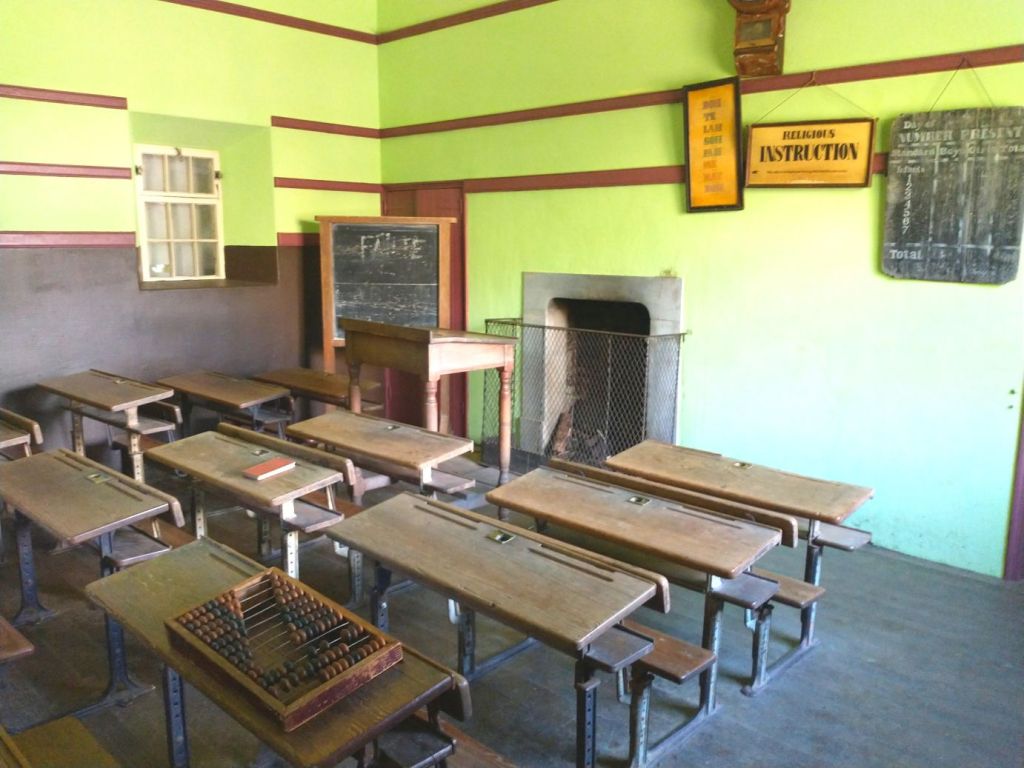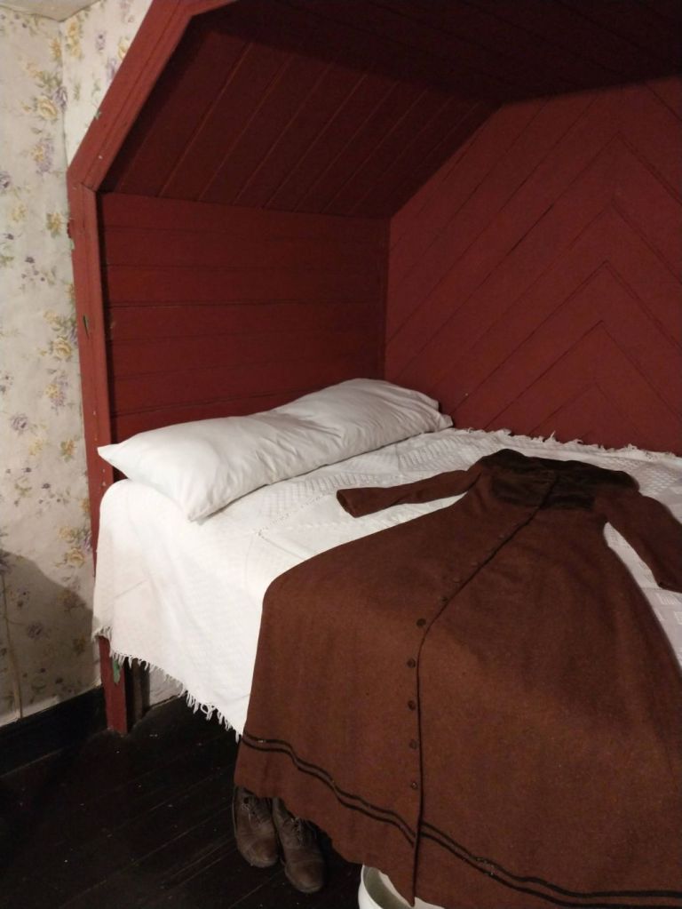 Which we make short work of, finishing our touring in less than an hour. Don’t get us wrong, it was interesting, the different types of houses – with real fires in the fire places – the school, the pub and shopping street. It was fun – but we’re done now and ready for lunch.