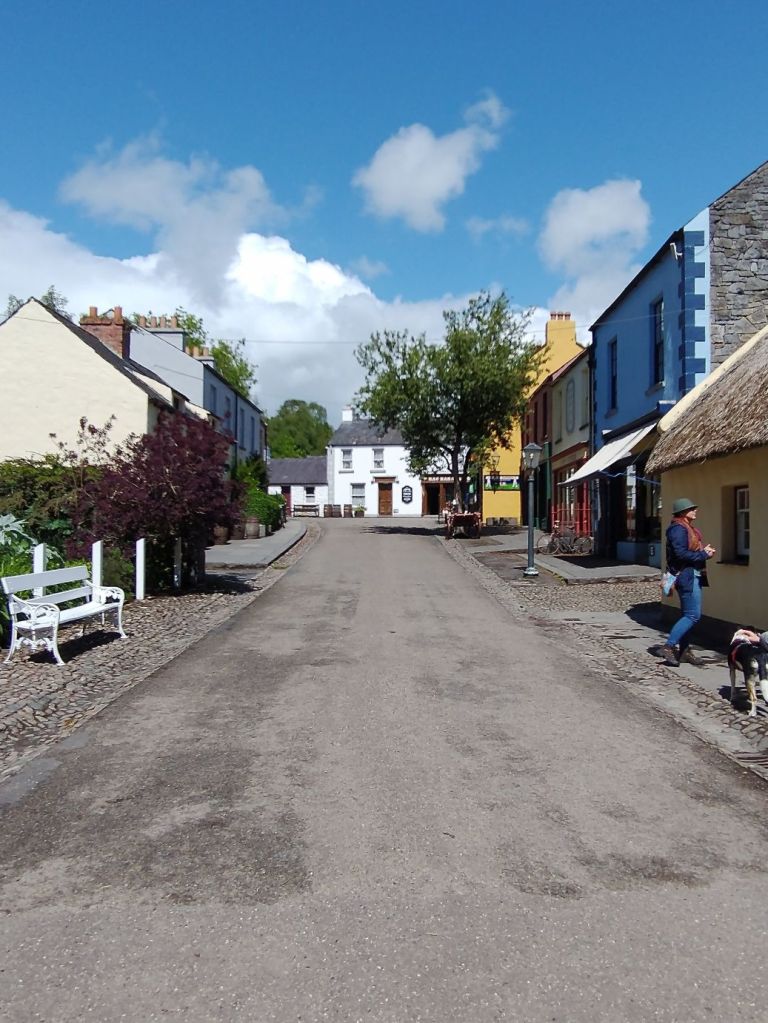 Now we’re going to Bunratty to tour the Folk Park and the Castle. As with most Folk Park’s we have visiting, this is a reconstruction of an 1800s village with the accompanying castle. Don’t know how much of this is actual old buildings and how much will be recreations. Wouldn’t necessarily be our thing, but when on tour….