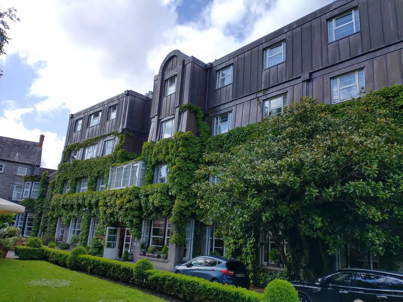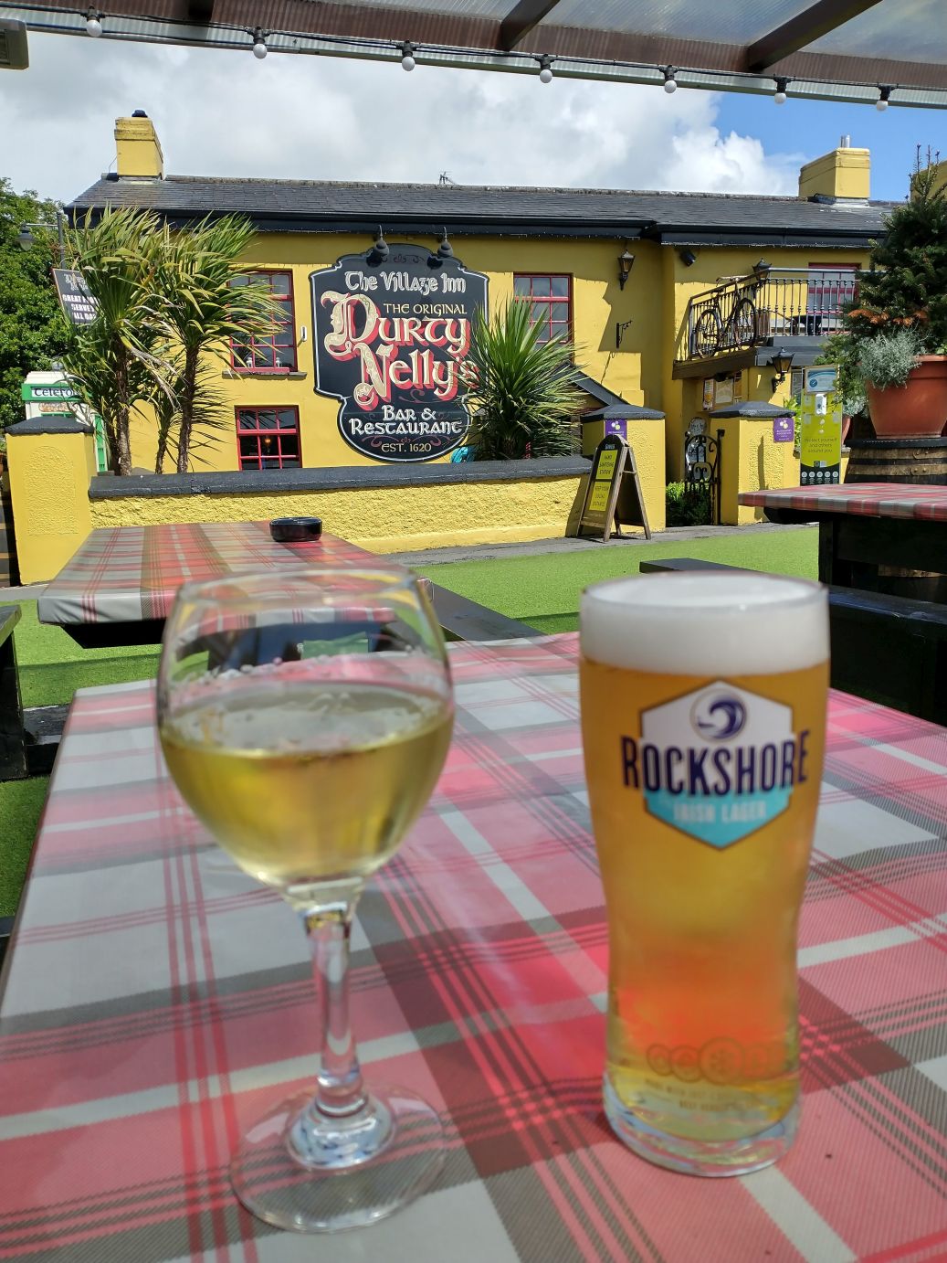 Then it is off to Ennis, where we are staying in this really neat old hotel called appropriately, the Old Ground Hotel. The lobby has these little library/lounge like sitting areas, there is a pub at one end and these wonderful grounds where we sit for a bit outside with a gazebo, tables and a very interestingly odd sculpture of a sunbather.
