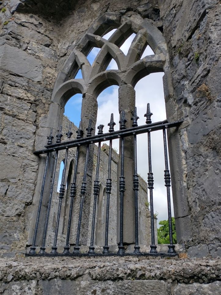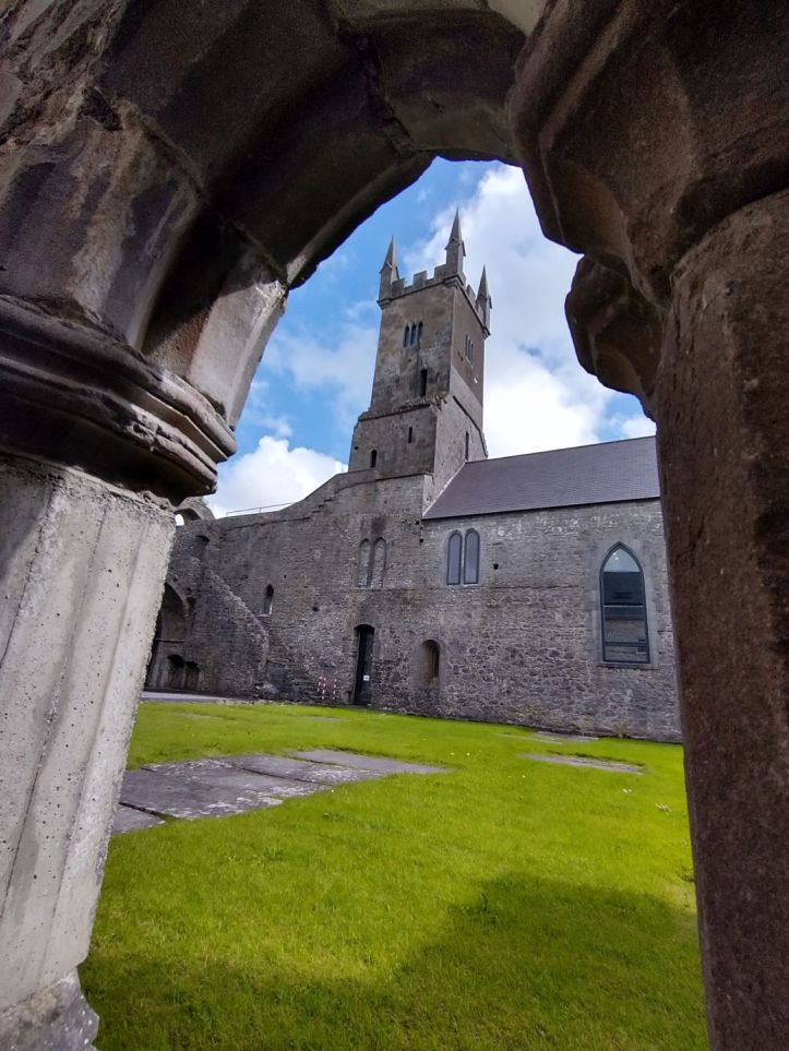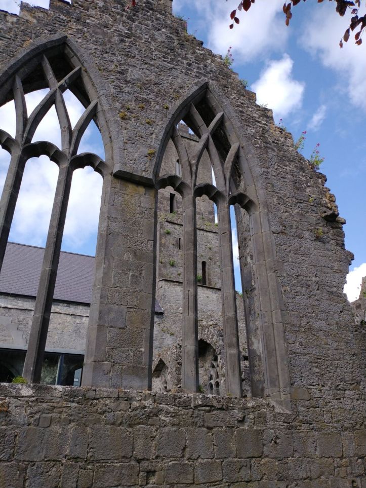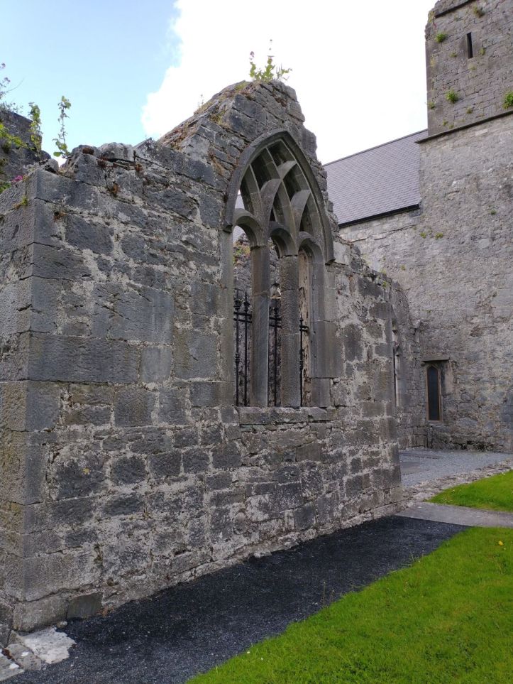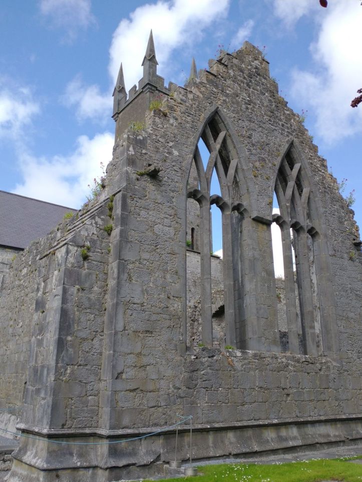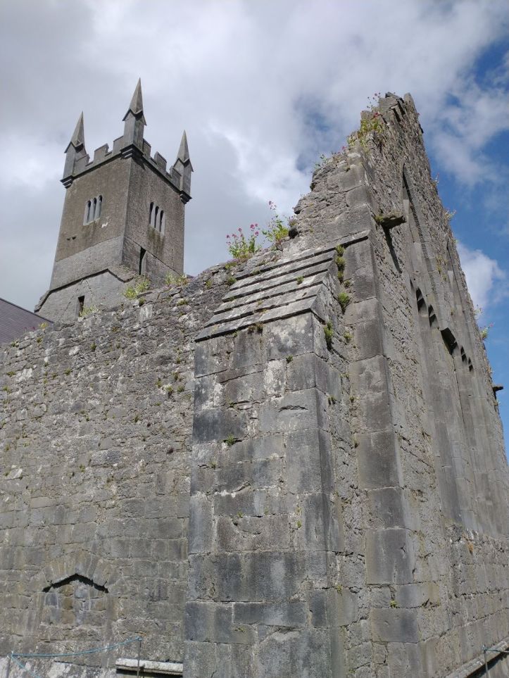 After organizing, we go out to reconnoiter the town and get some groceries at Aldi and Tesco. In our wanderings however, we stumble upon the Ennis Friary, a 13th century Franciscan friary at the end of the town road. We’re game. It looks really great – and it turns out to be a highlight. The friary is in all states of ruin, but has many artifacts and relics preserved. Not only the grounds fabulous and beautiful….