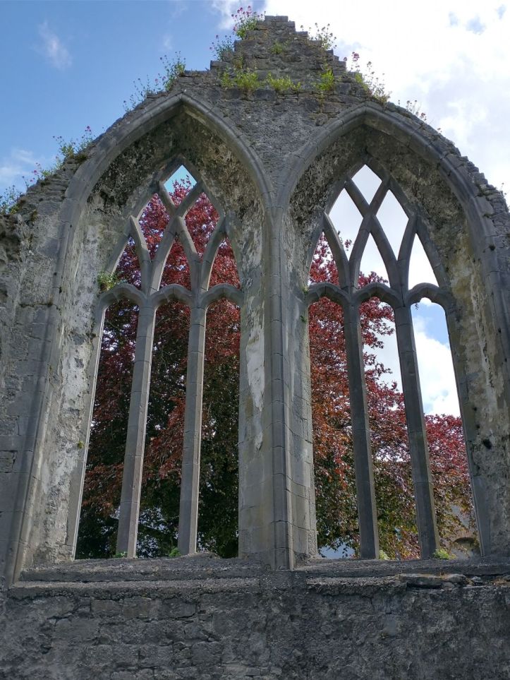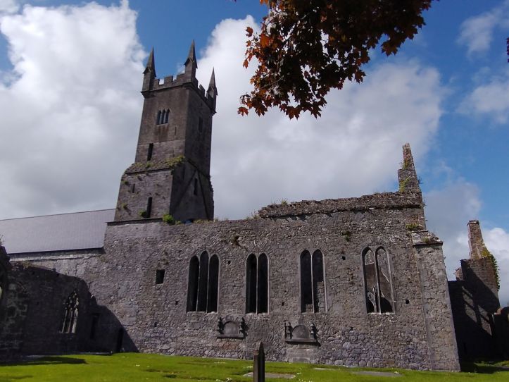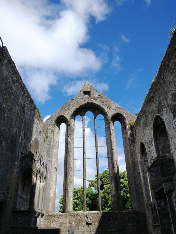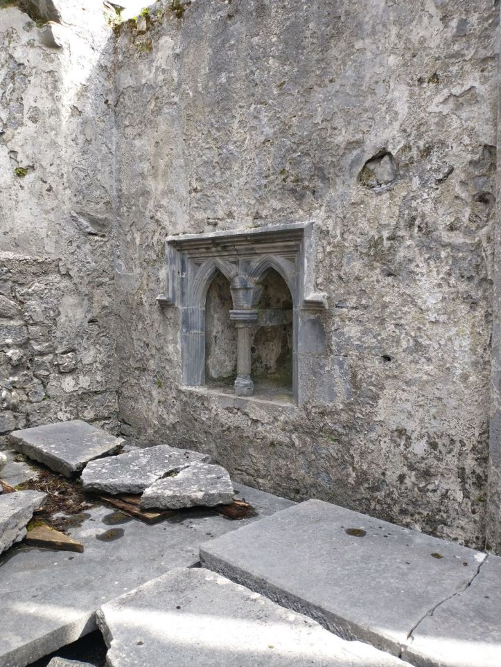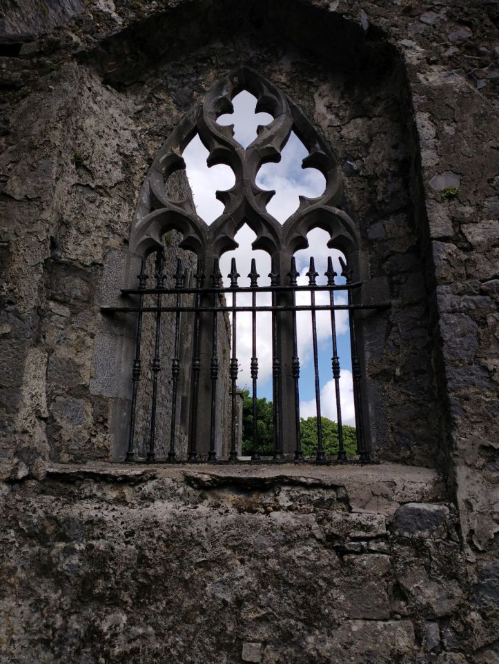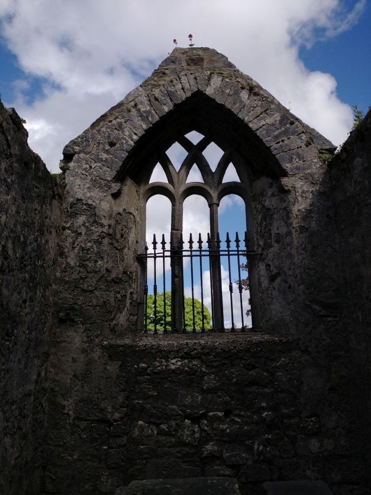 After organizing, we go out to reconnoiter the town and get some groceries at Aldi and Tesco. In our wanderings however, we stumble upon the Ennis Friary, a 13th century Franciscan friary at the end of the town road. We’re game. It looks really great – and it turns out to be a highlight. The friary is in all states of ruin, but has many artifacts and relics preserved. Not only the grounds fabulous and beautiful….